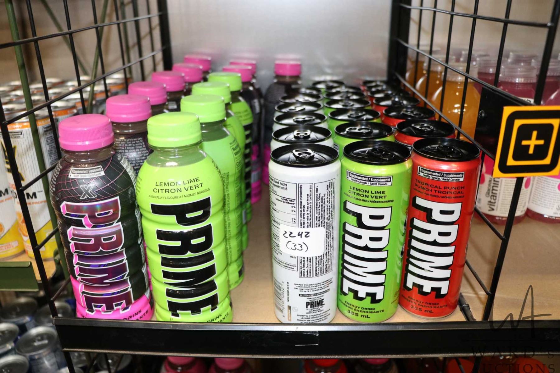 Selection of Prime energy drink including 9 500ml regular and 4 lemon lime. Plus 6 355ml cans of Prime original, 7 355ml cans lemon lime and 7 355ml tropical punch