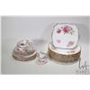 Selection of Royal Albert "Orleans Rose" bone china dinner ware including ten dinner plates, six luncheon plates, four side plates, two cups and saucers, a square snack plate and an open sugar bowl and creamer. Note: Not available for shipping. Local pickup only
