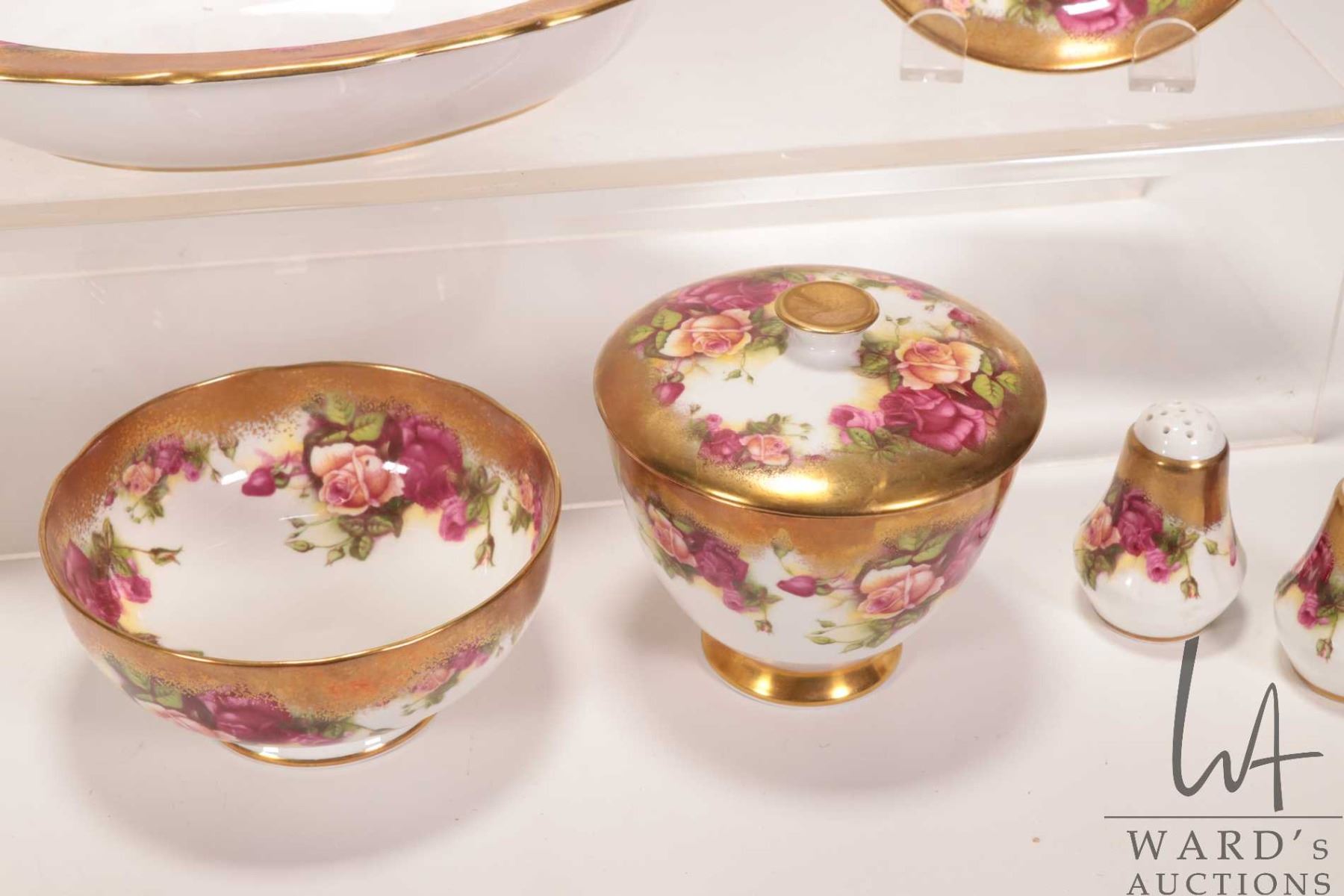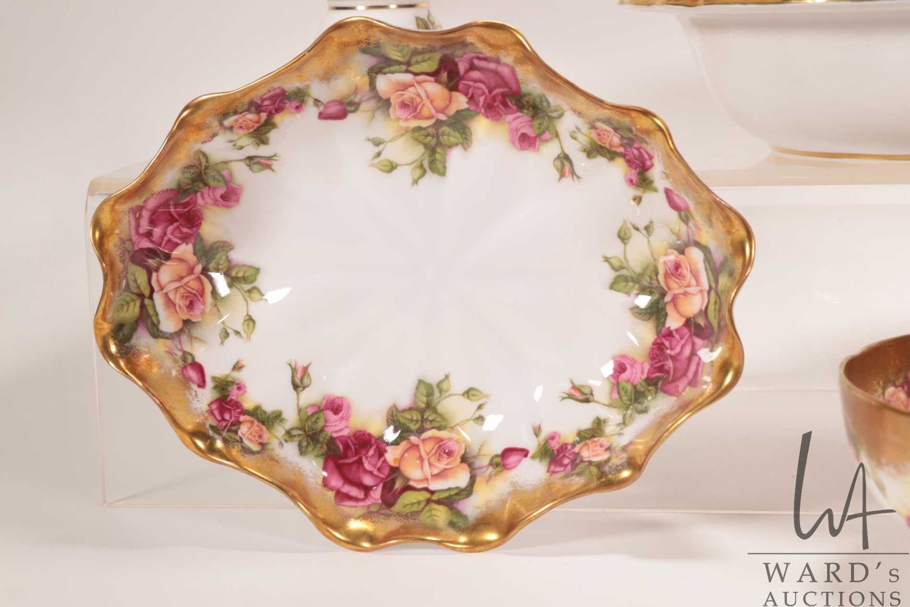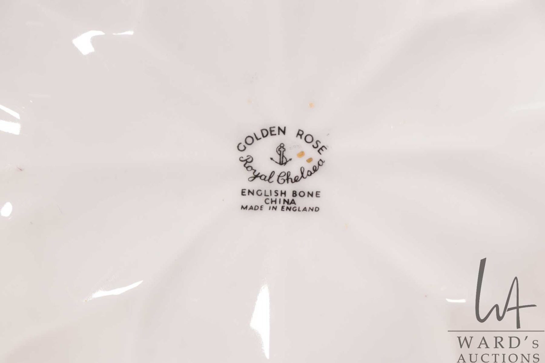 Selection of Royal Chelsea Gold Rose china including 9 1/2  diameter comport, 10  open vegetable dis