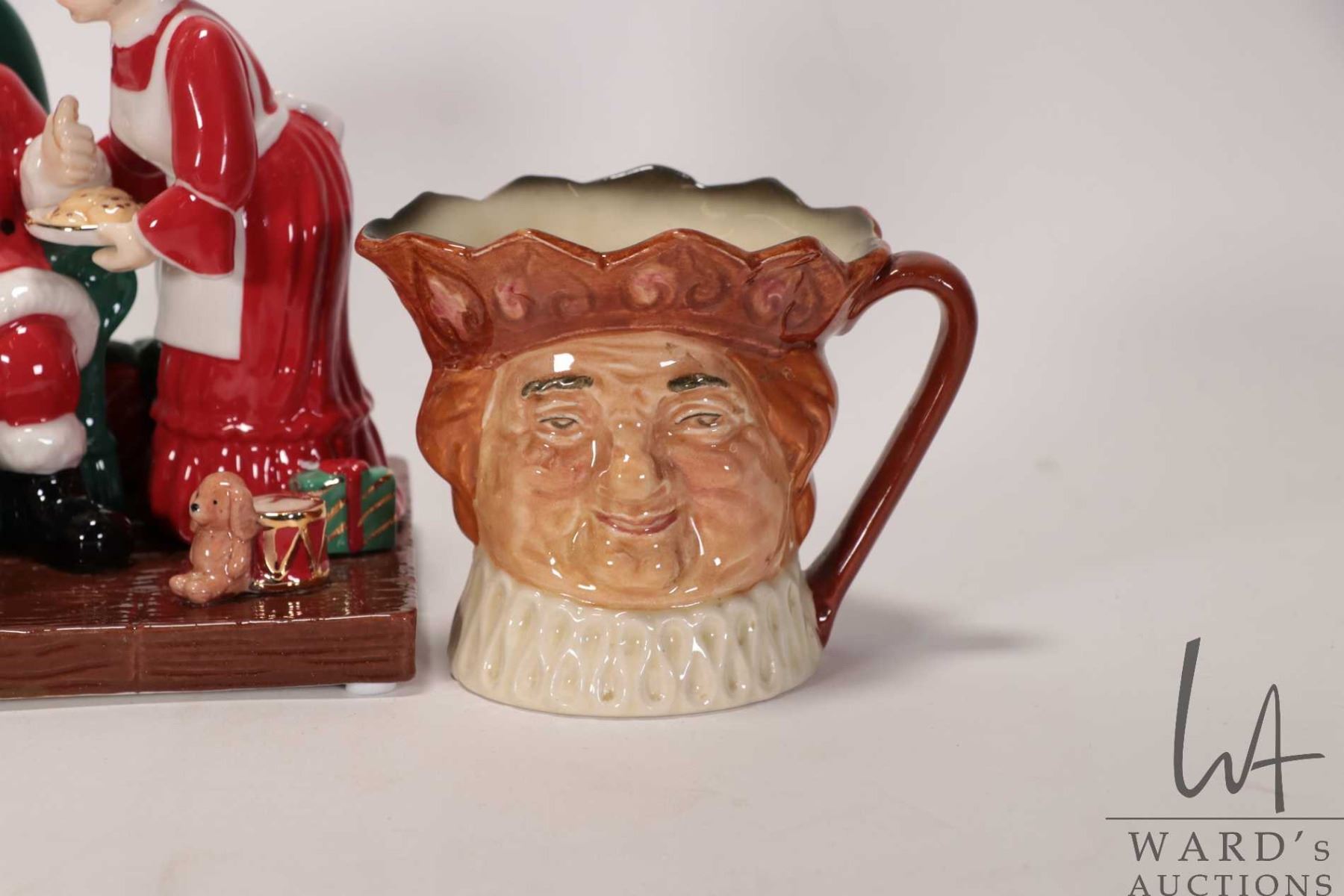 Selection of Royal Doulton Christmas collectible figures including limited edition 2570/3500 "Santa Takes a Break" HN5550, "Santa & Reindeer" HN5707 and "Santa & Sleigh" plus small character jug "Old King Cole"