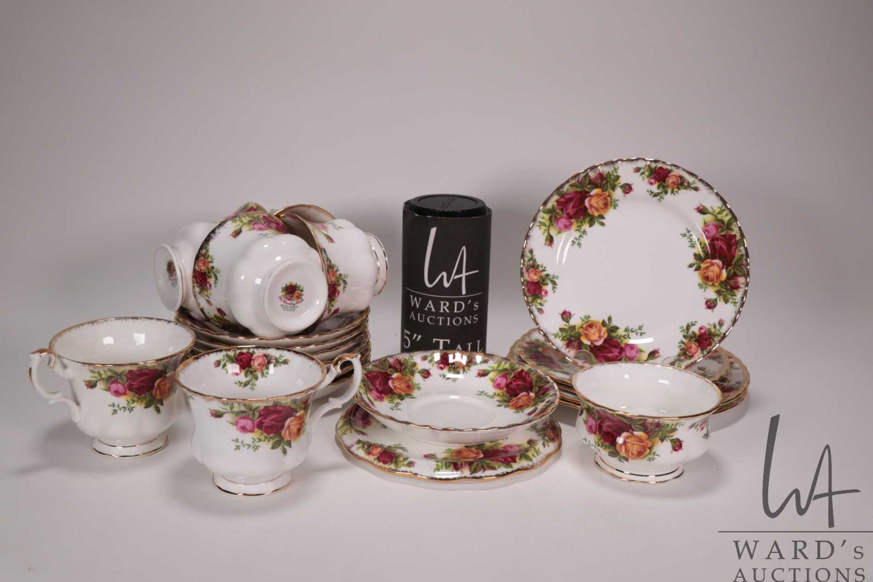 Selection of Royal Doulton "Old Country Roses" bone china including six teacups and saucers, two 7"