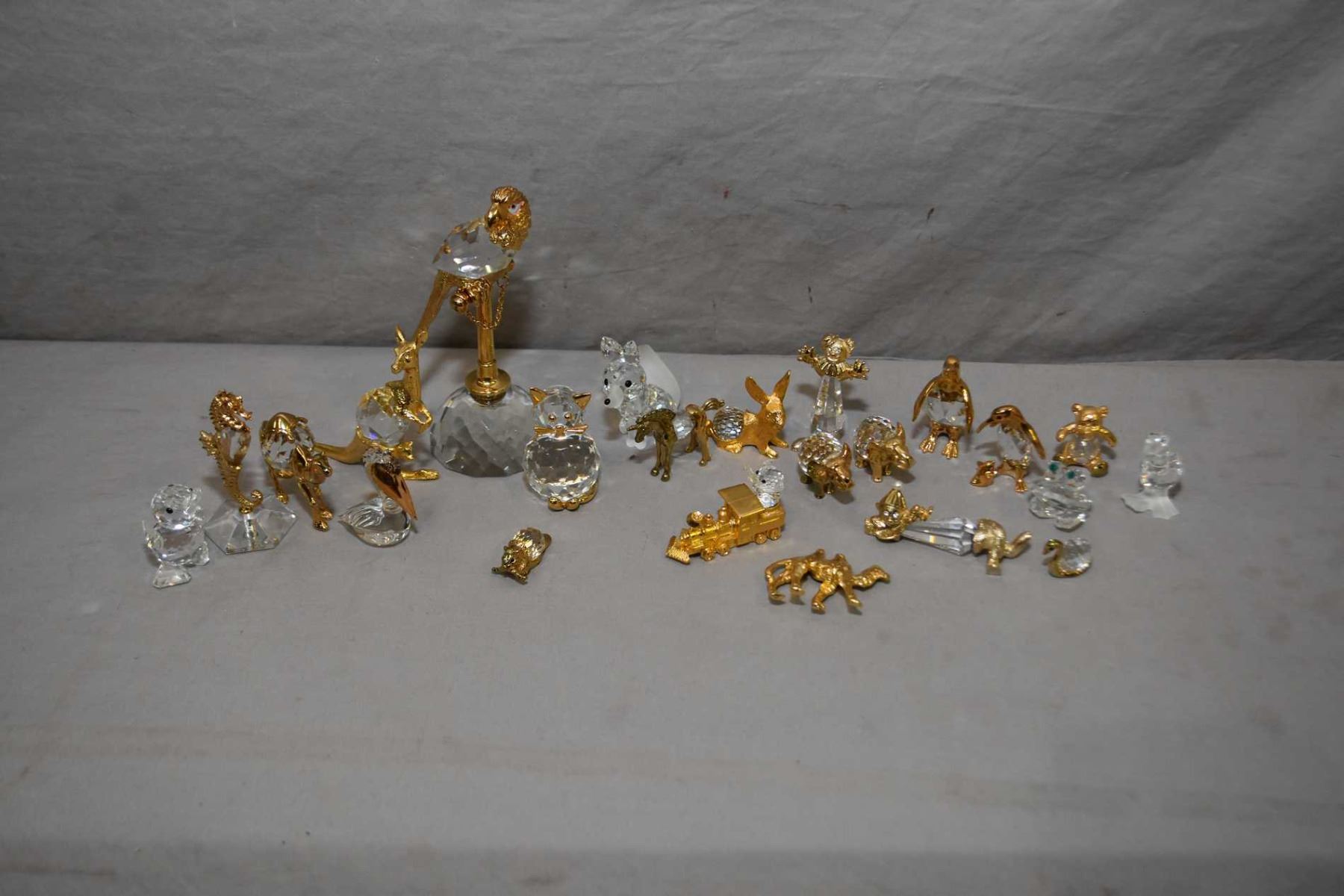 Selection of Swarovski crystal miniatures including fox, elephants, kangaroo, camel, parrot, cat, birs plus clowns rabbit etc.