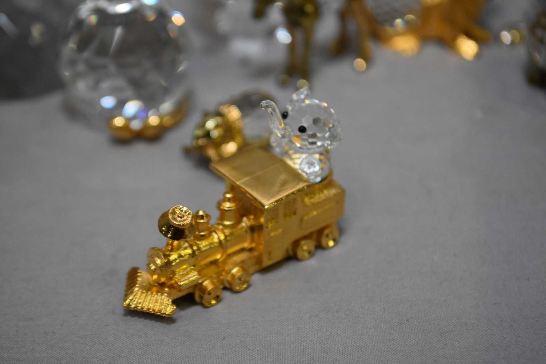 Selection of Swarovski crystal miniatures including fox, elephants, kangaroo, camel, parrot, cat, bi