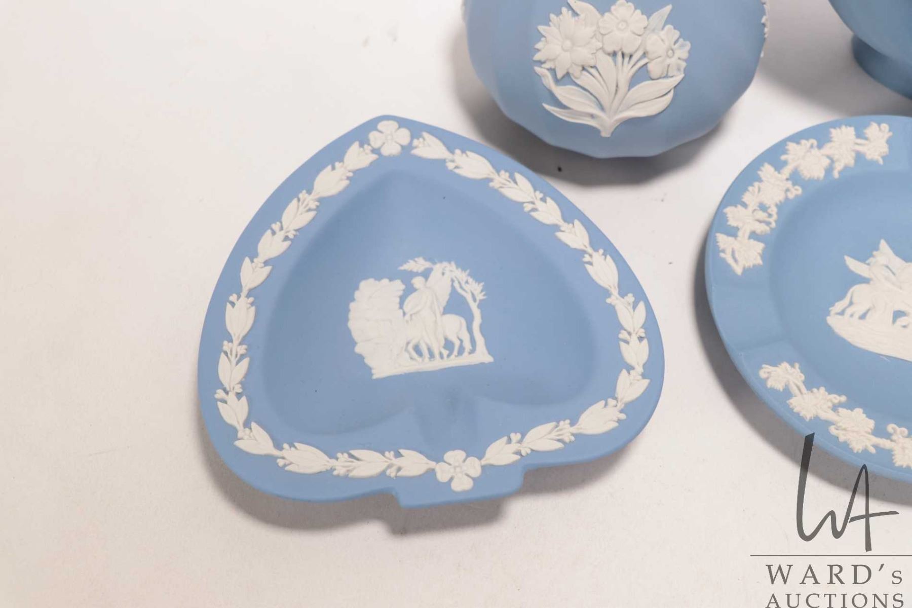 Selection of Wedgwood Jasperware including three small pin trays, miniature 3" dish, footed dish and