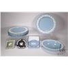 Selection of Wedgwood porcelain including six Queensware dinner plates and an open vegetable dish and three Jasperware pin trays
