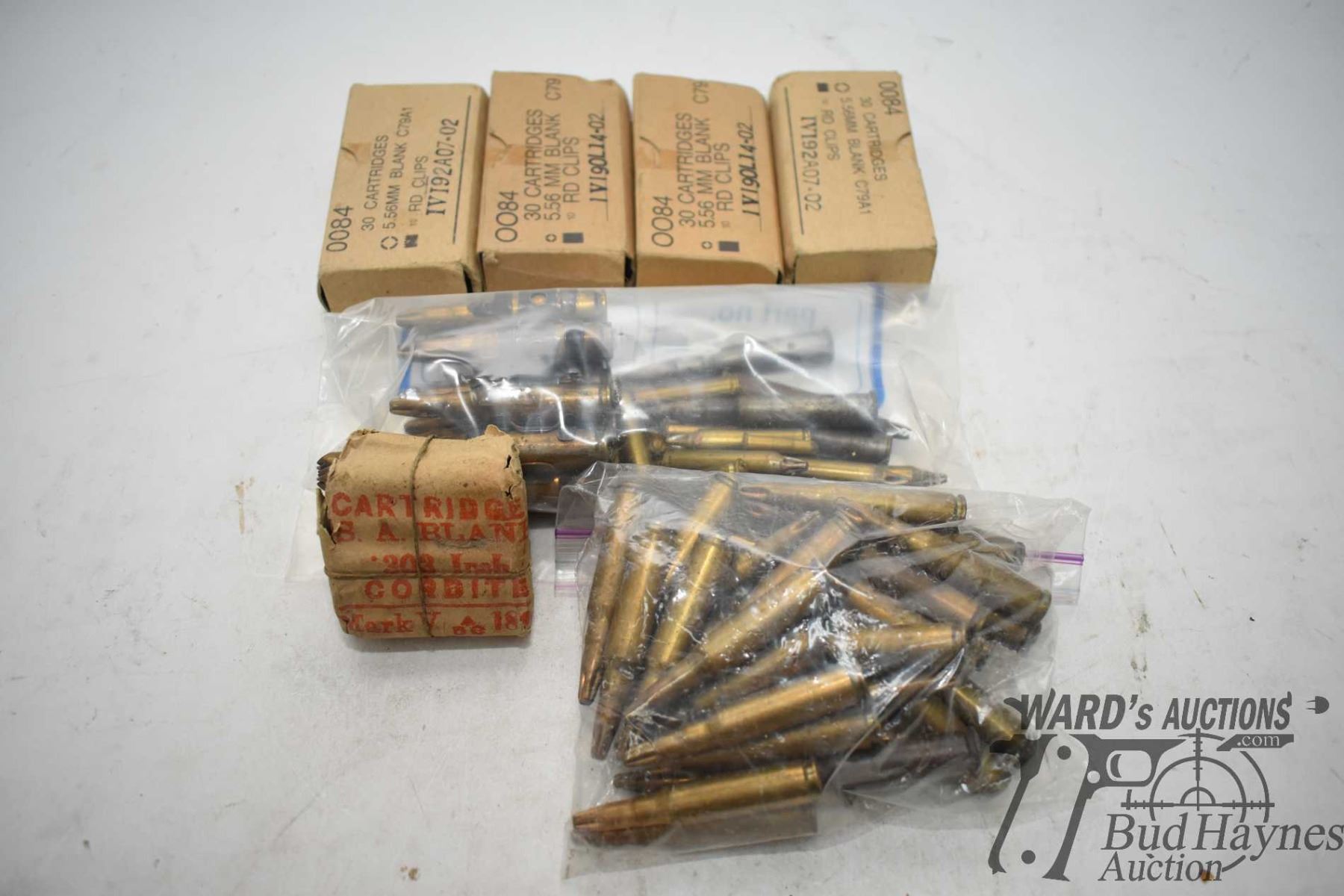 Selection of ammo blanks including three full 30 count packs of 5.56, 51 .308 win, 14 .22 LR, 1 9mm,