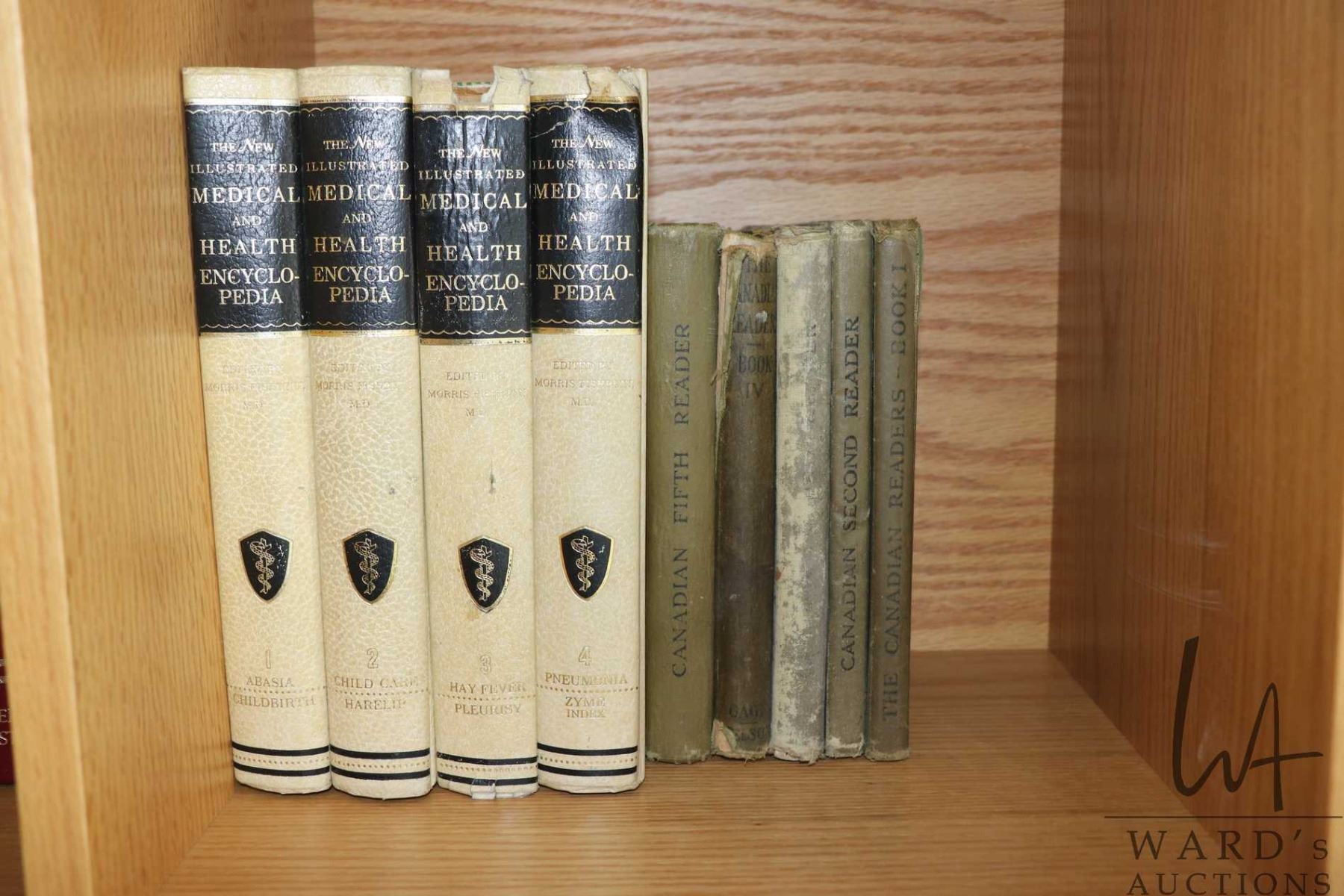 Selection of books including four volume set "The New Illustrated Medical And Health Encyclopedia" and five volumes of "The Canadian Readers"