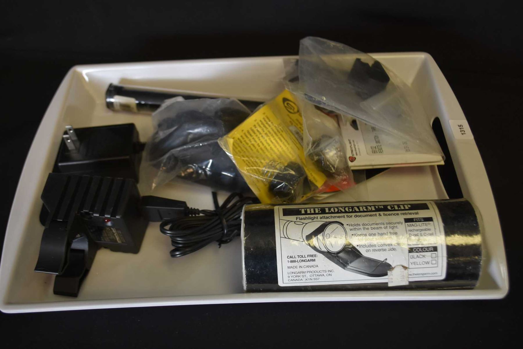 Selection of brand new Streamlight items including 20XP-LED battery, switch module, smaller battery, 69132 Remote switch tape, a belt pouch, Stinger fast charger, 88118 low profile rail mount etc.