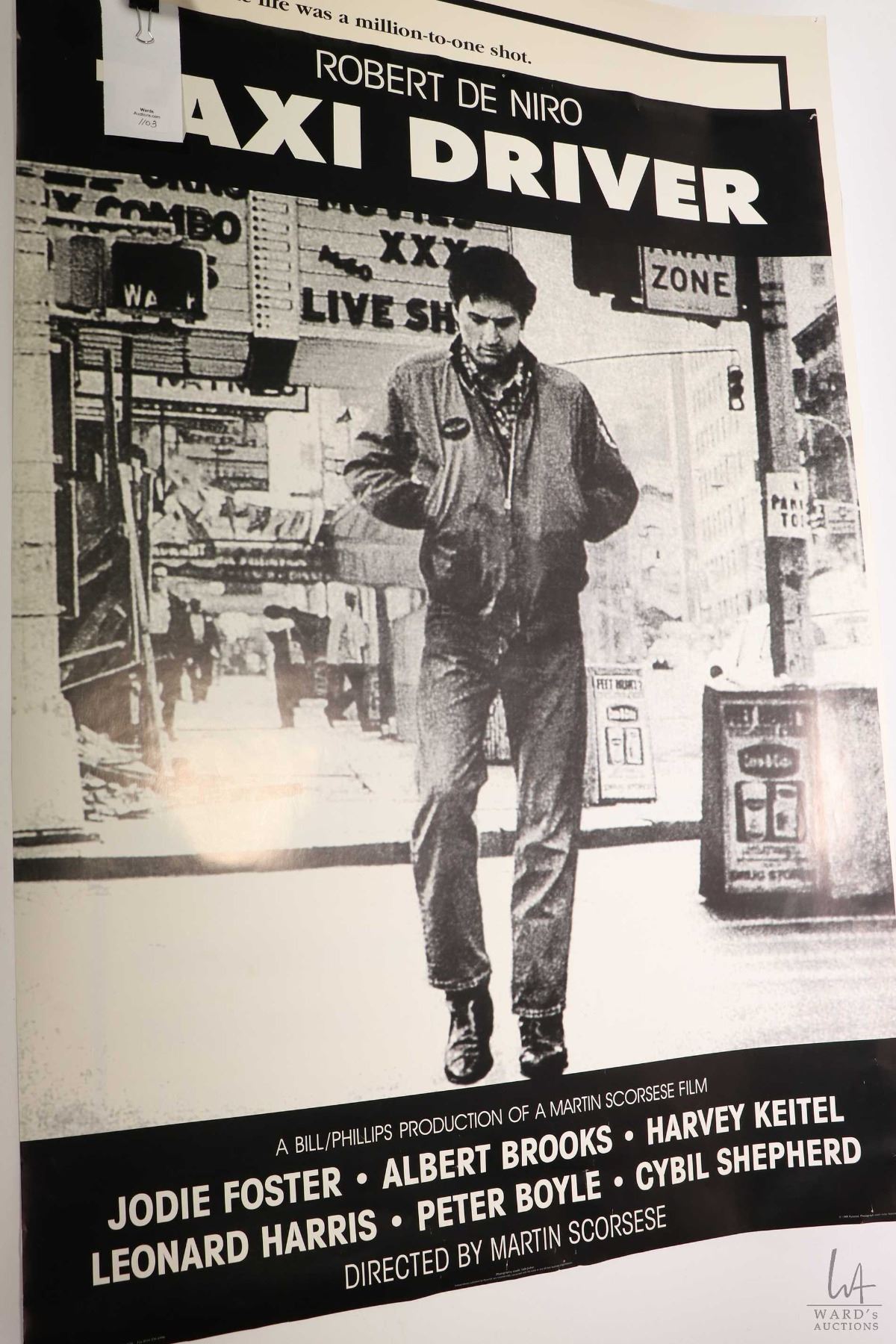Selection of cinema collectibles including Robert De Niro "Taxi Driver" poster, " Rocky" poster, packaged miniature movie posters: Lord of the Rings, Kill Bill and Rocky, plus a King Kong movie poster style tin sign