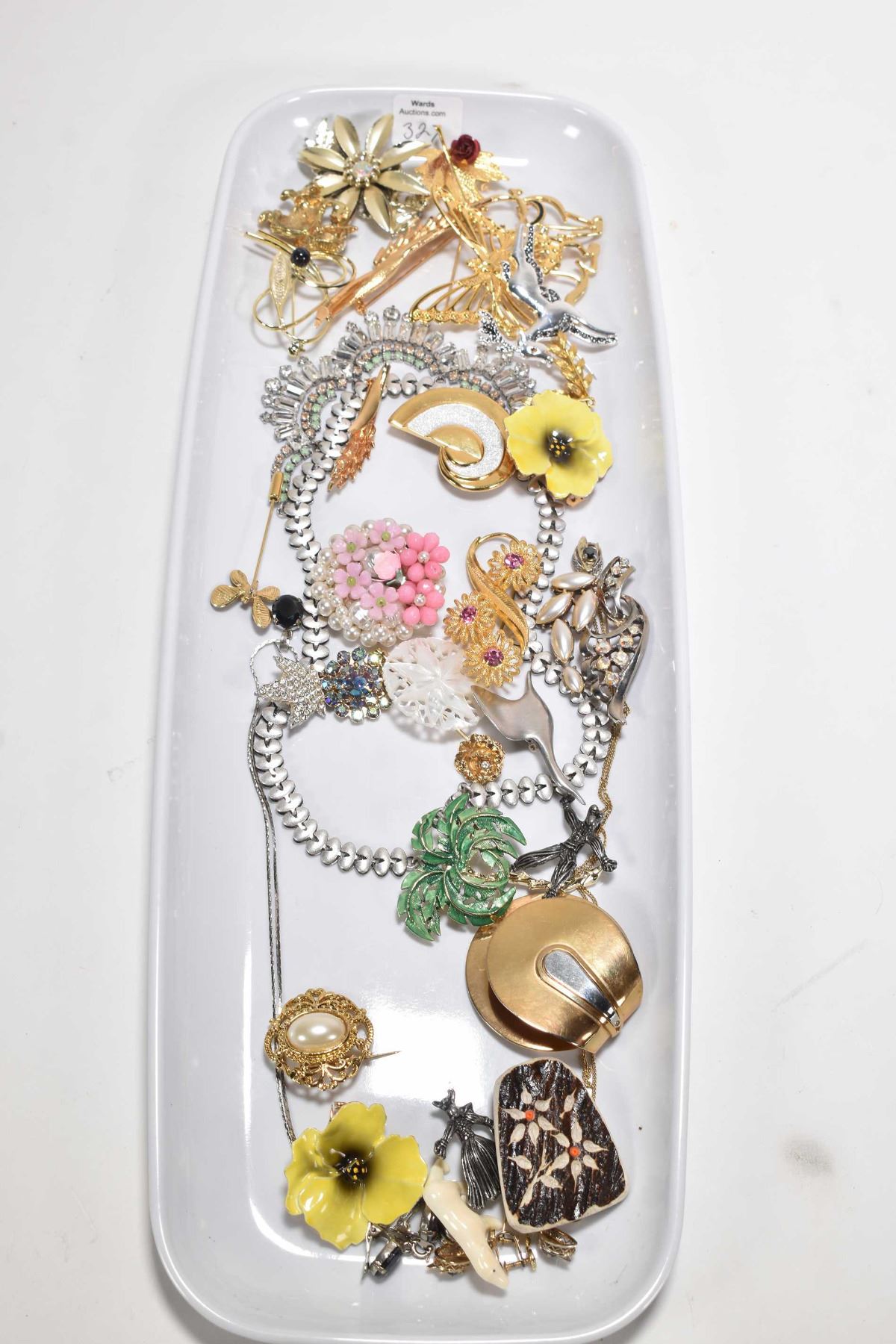 Selection of collectible jewellery including vermeil and hematite necklace with matching earrings, sterling, vintage brooches, Stella and Dot necklace etc.