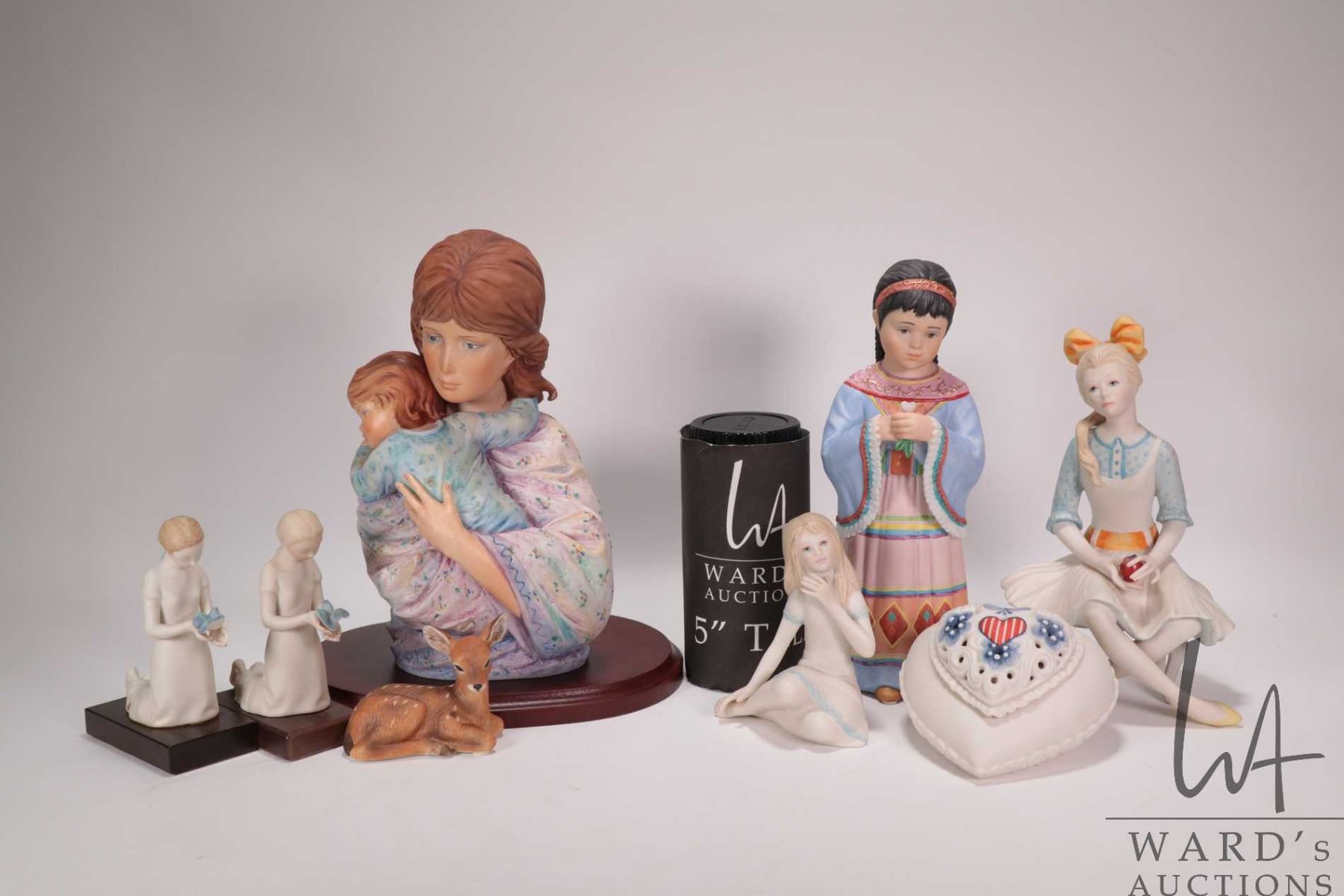 Selection of collectible porcelain including Edna Hibel for Kaiser Porcelain "Maria and Child" 8 1/2" in height and LE 8/250 plus "Willow and Cub" and a selection of Cybis porcelain figures NOTE: SHIPPING IS NOT AVAILABLE, LOCAL PICK UP ONLY