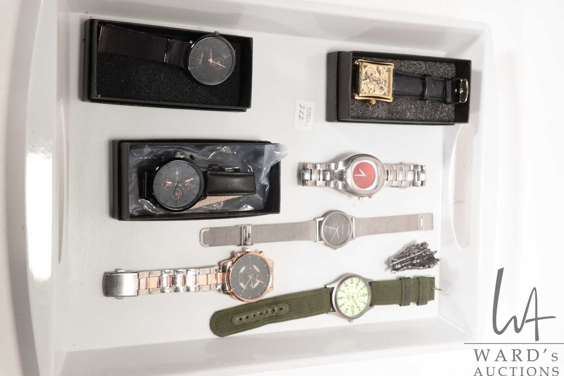 Selection of collectibles gents wrist watches including Fossil and Yolako plus a Chinese dragon ring, some working, some not working at time of cataloguing, batteries needed