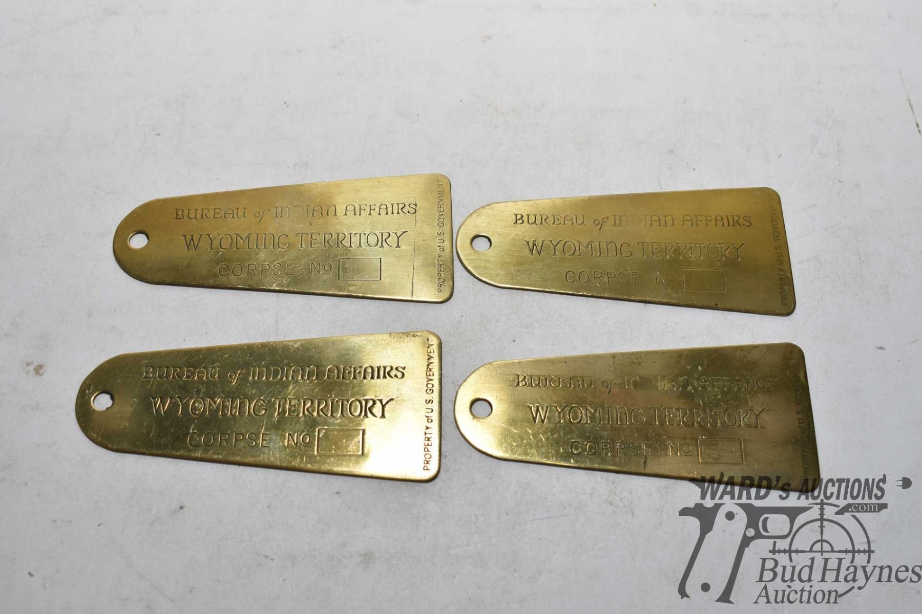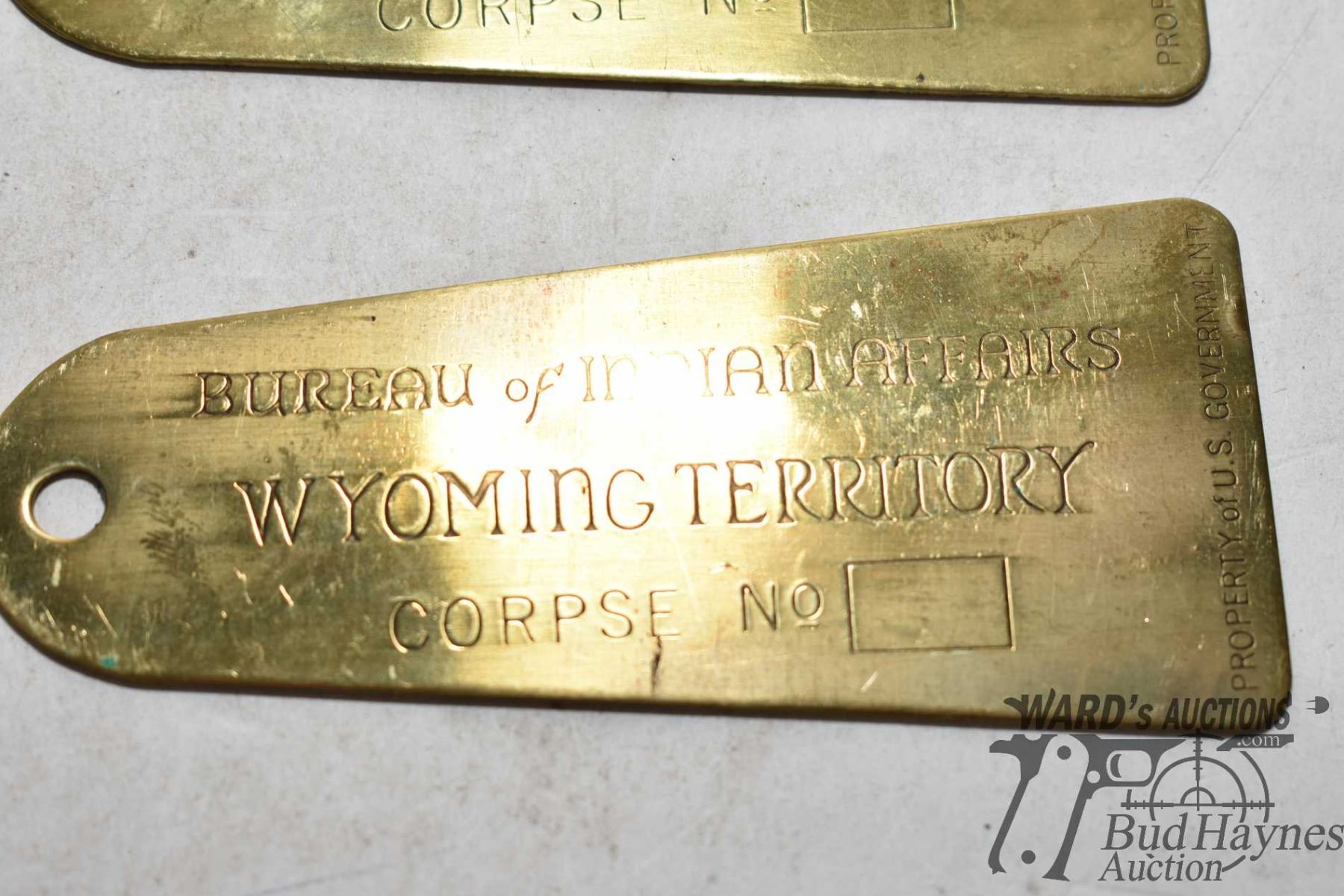Selection of collectibles including Colt Army .44 cal Western Canada Auctioneer School, four Bureau of Indian Affairs Wyoming Territory brass plaques, etc