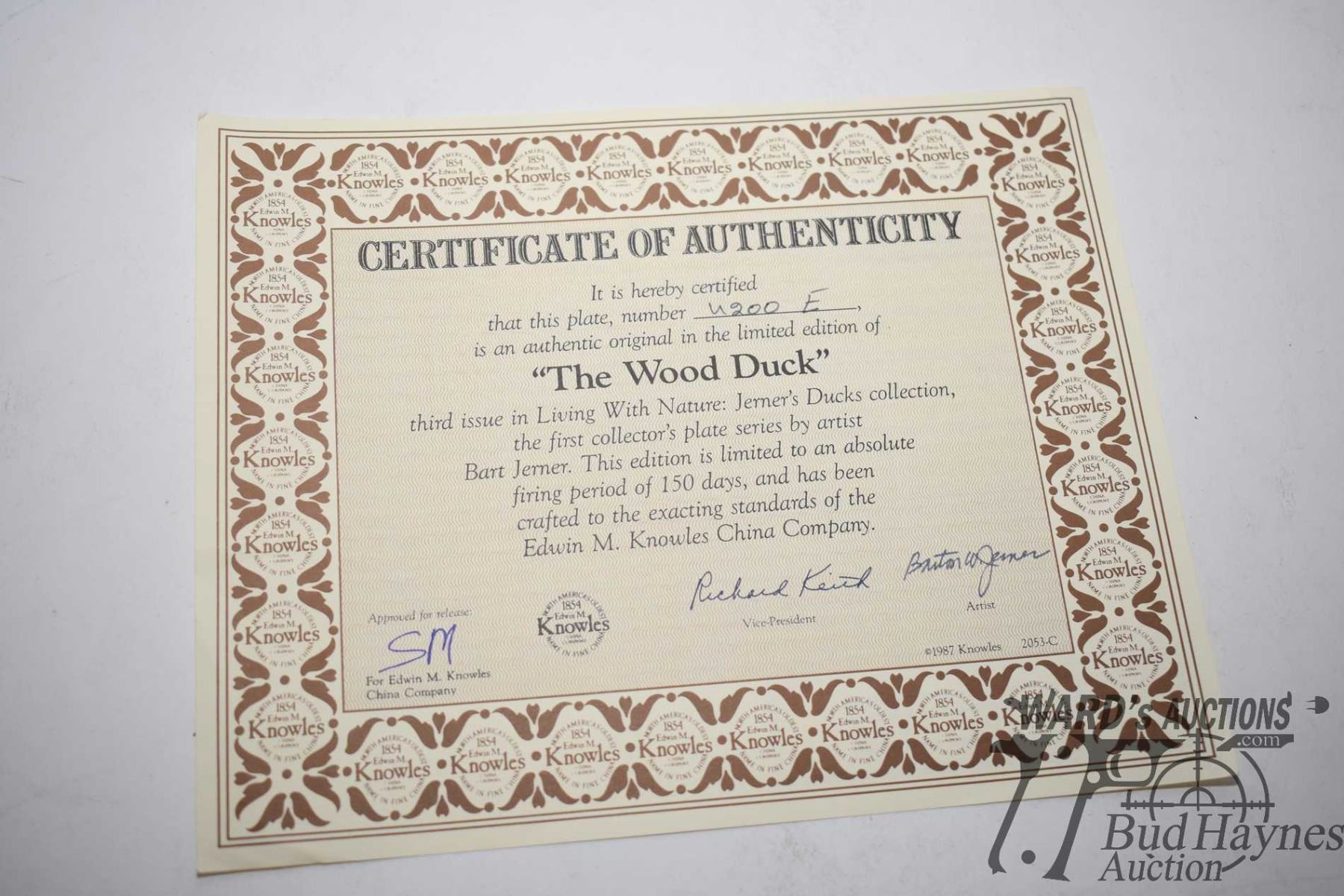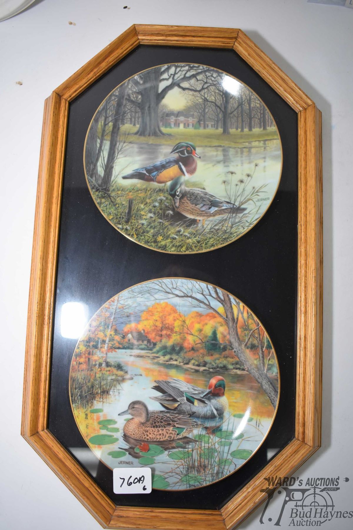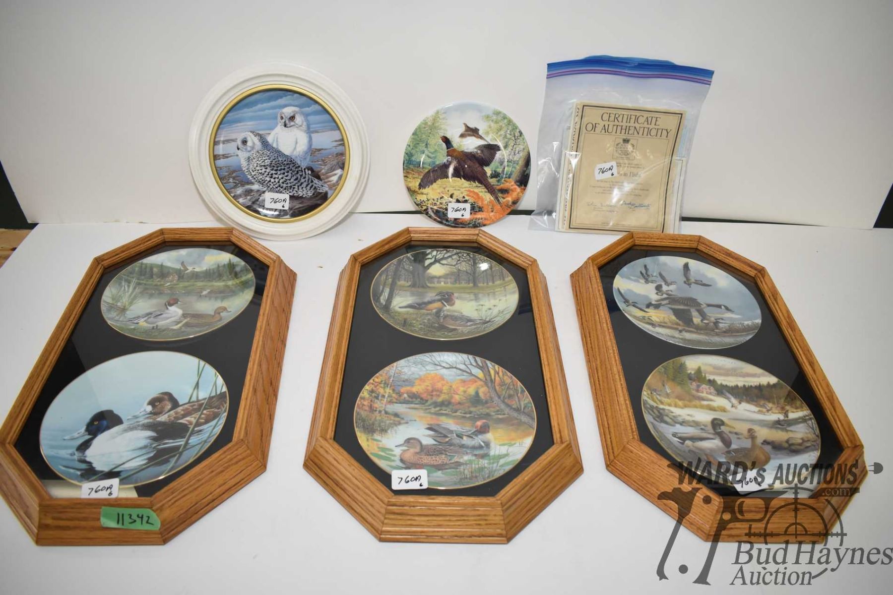 Selection of collector plates including 6 duck plates in frames, a framed owl plate and a pheasant plate. All w/ original certificates