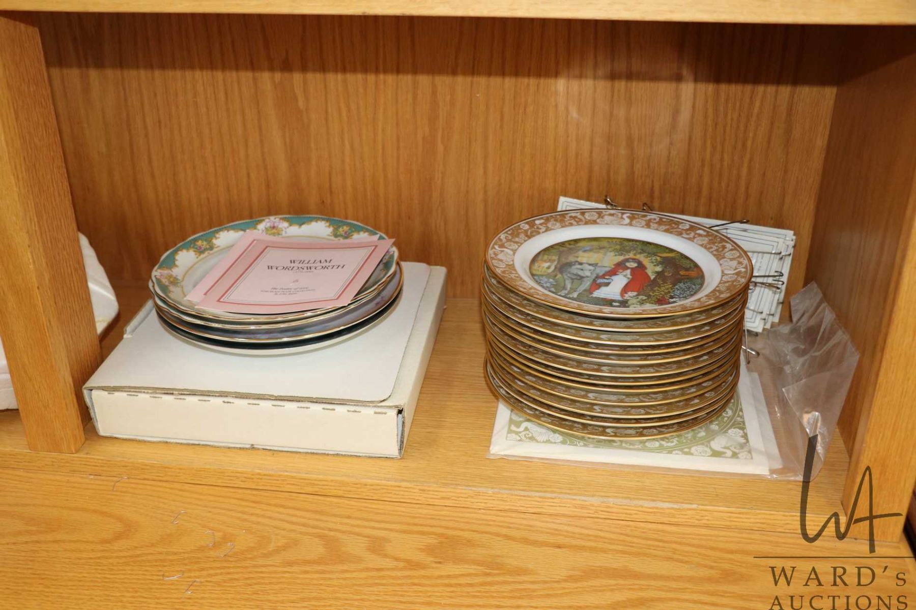 Selection of collector plates including twelve Franklin Mint Grimm's Fairy Tales, with original COA's, two Poetry of Love plates: Ribert Herrick and William Wordsworth, each with COA plus two other plates plus twelve wall mount plate hangers