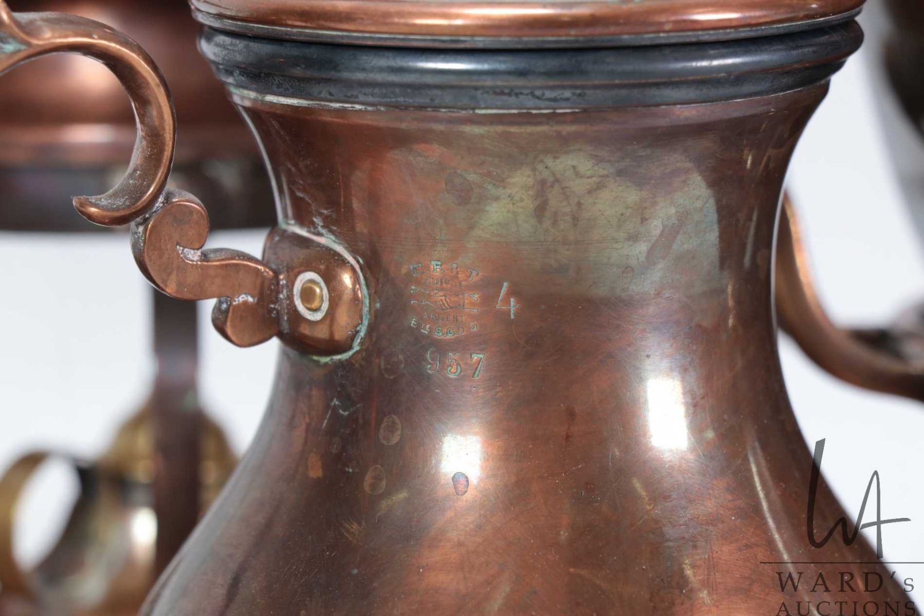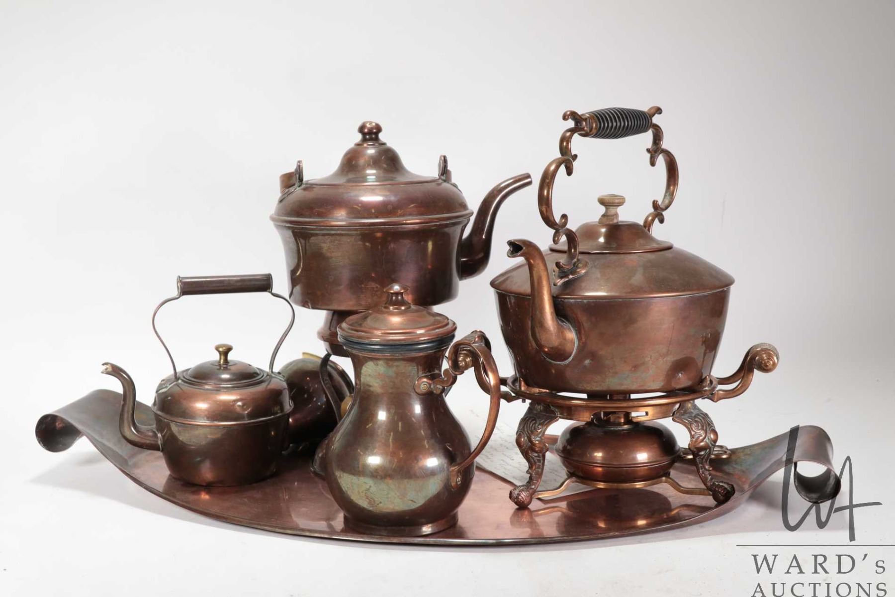Selection of copper including teaset purportedly belonging to Annie Olivia Tiffany Mitchell ( 1844-1