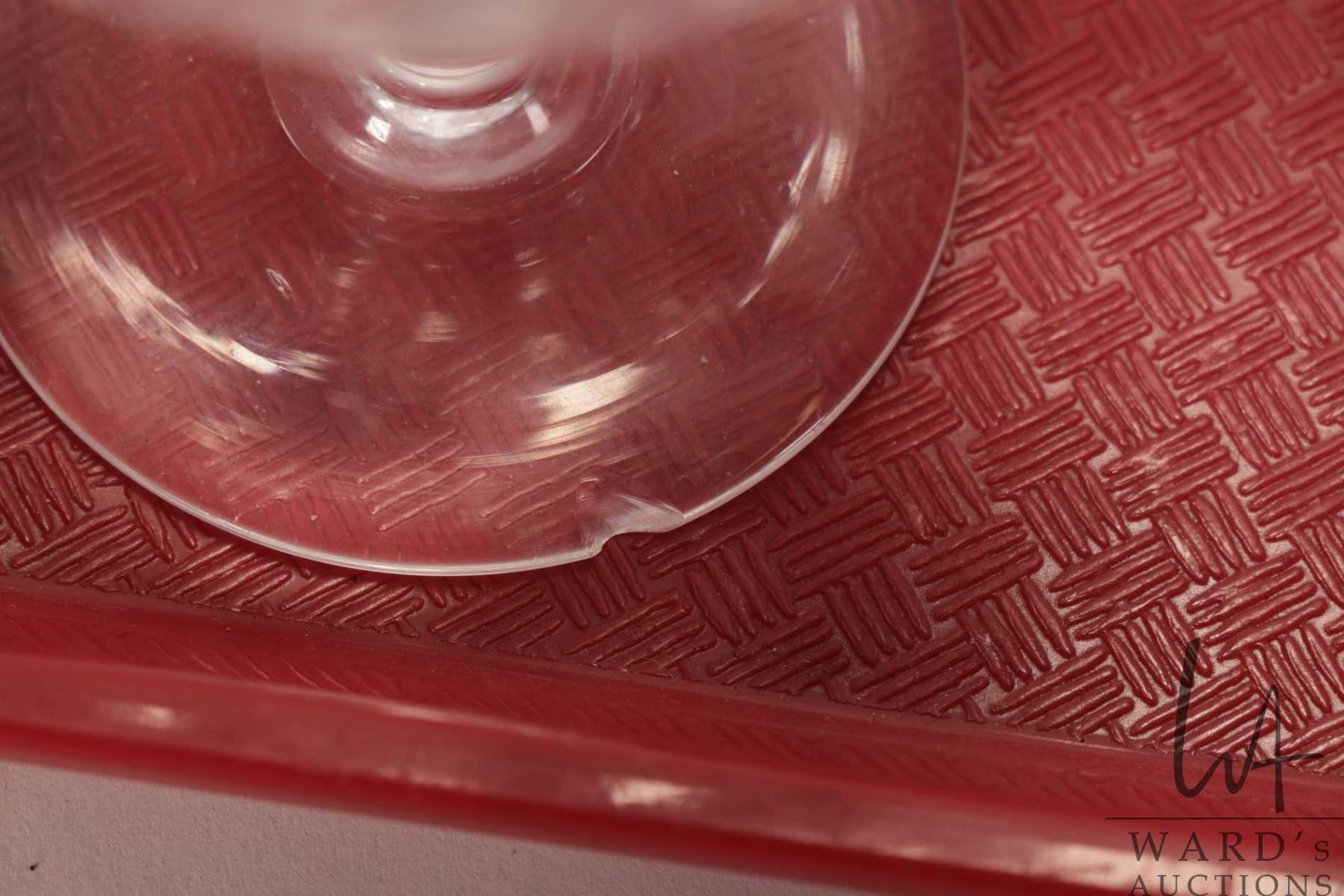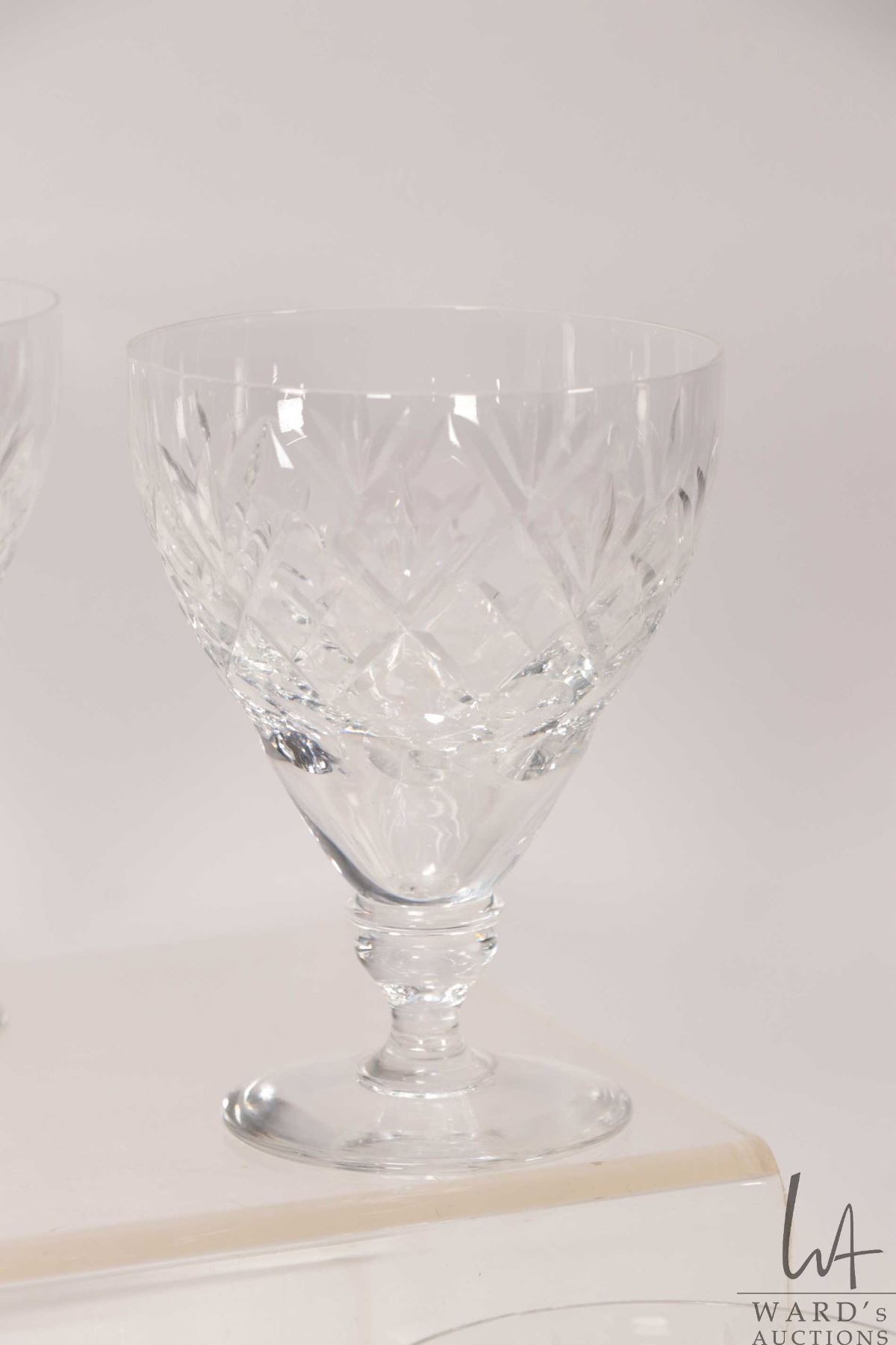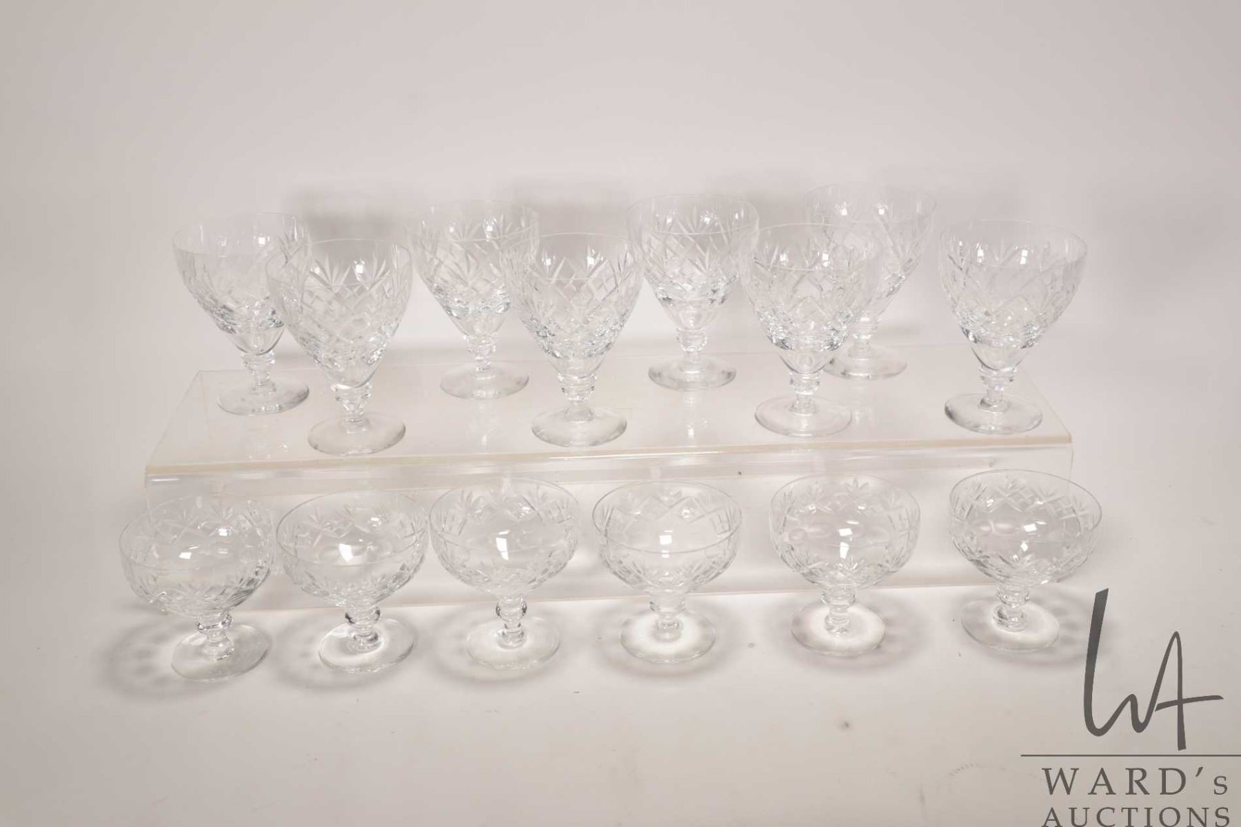 Selection of crystal Georgian patterned stemware including eight water goblets and six champagnes