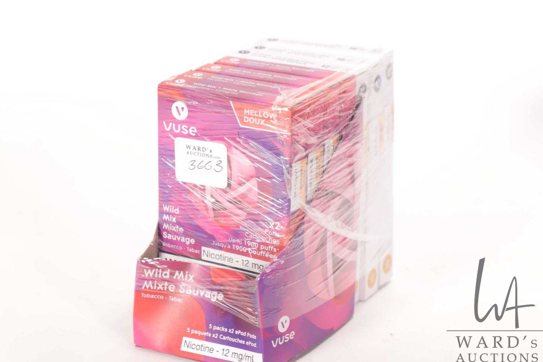 Selection of e-cigarette products including three boxes of Vuse clear-flavour free nicotine pods including one 12mg and two 18mg and three 12 mg packages of Vuse Wild Mix, each box containing two pods Note: Age Appropriate Canadian Buyers Only Note: Age Appropriate Canadian Buyers Only
