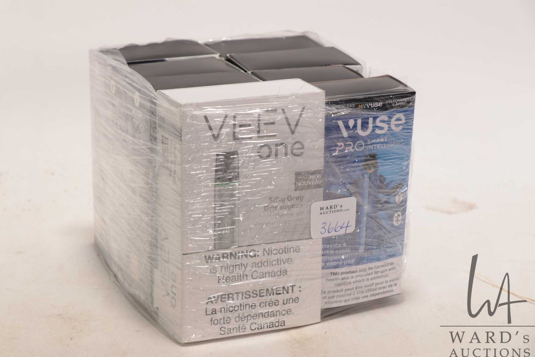 Selection of e-cigarettes products including five Vuse ePod 2+ device and USB cable packages, two Vuse Pro Smart Intelligent device and USB cable packages and Veev One Silky Grey device kits Note: Age Appropriate Canadian Buyers Only