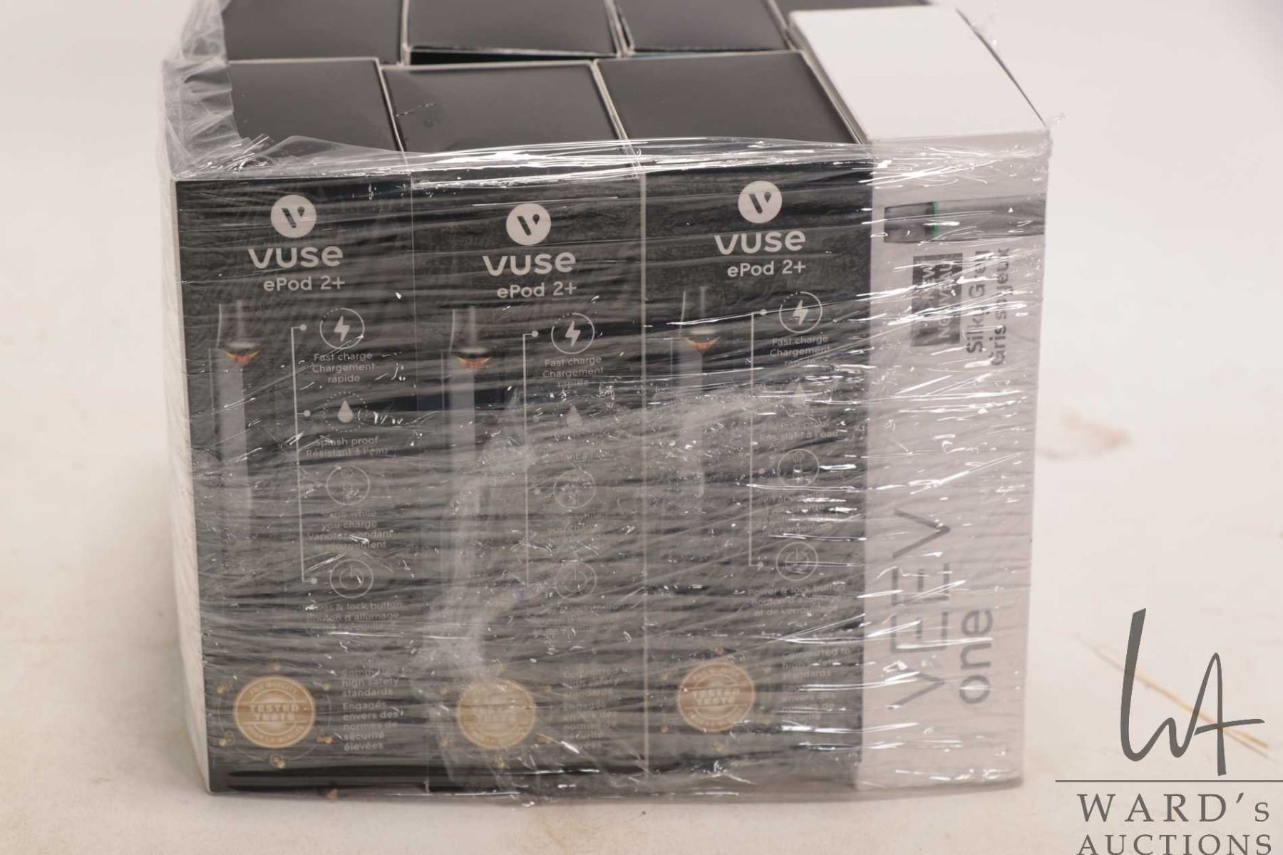 Selection of e-cigarettes products including five Vuse ePod 2+ device and USB cable packages, two Vu