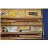 Selection of fishing rods including two 3 piece, one with flies, leaders and floats and one with interchangeable tips plus a two piece casting rod with accessories
