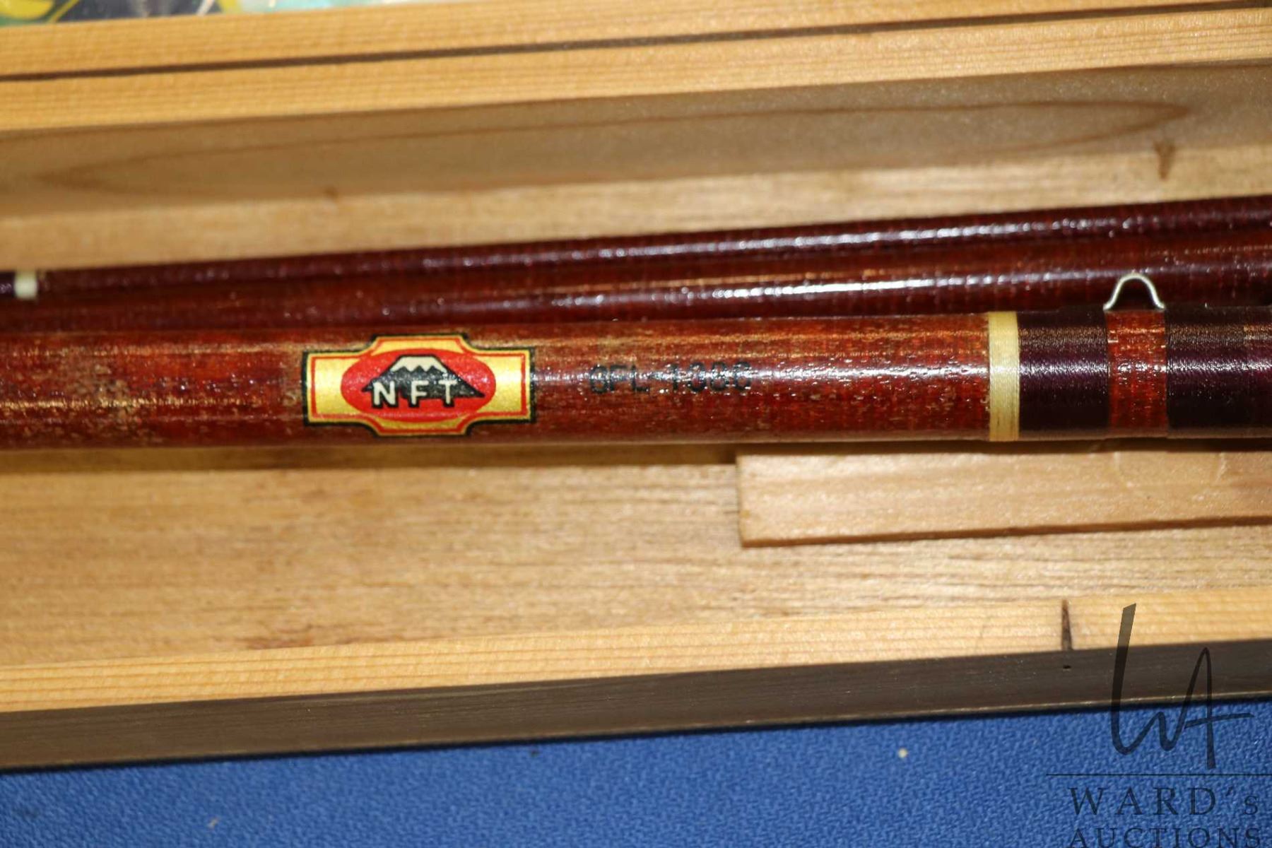 Selection of fishing rods including two 3 piece, one with flies, leaders and floats and one with int