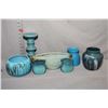 Selection of glazed pottery including candlestick 9" in height, assorted vases and bowls