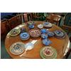 Selection of glazed pottery tableware including nine 10 1/2" plates, twelve 7" plates, six 5 1/2" bo