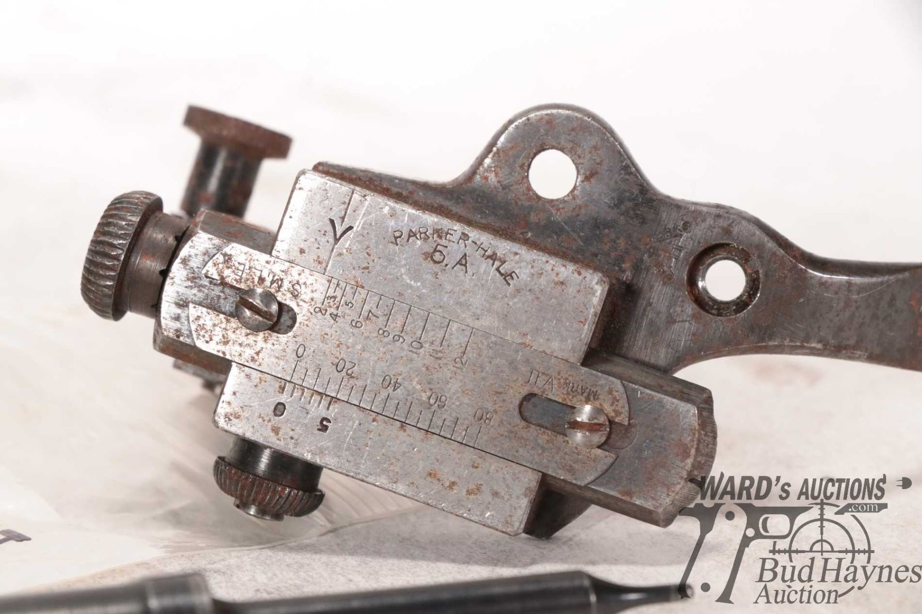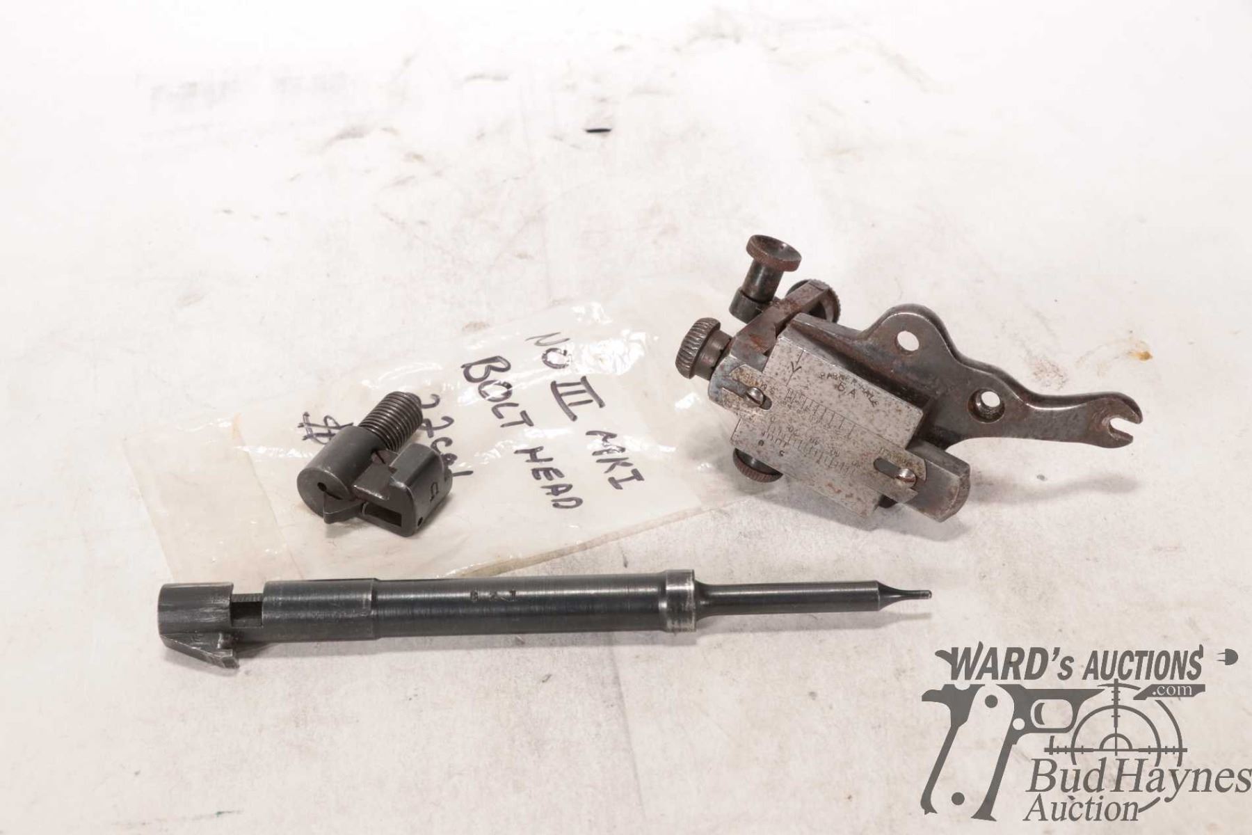 Selection of gun parts including Parker Hale 5A Selection of gun parts including Parker Hale 5A target sight, firing pin for Japanese 99 and a No III MKI bolt head .22 cal