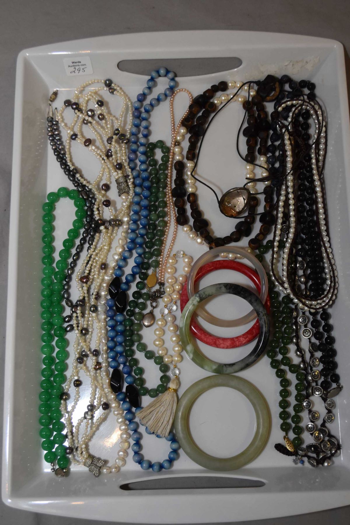 Selection of ladies jewellery including stone and jade necklaces, bangles, fresh water pearls etc.