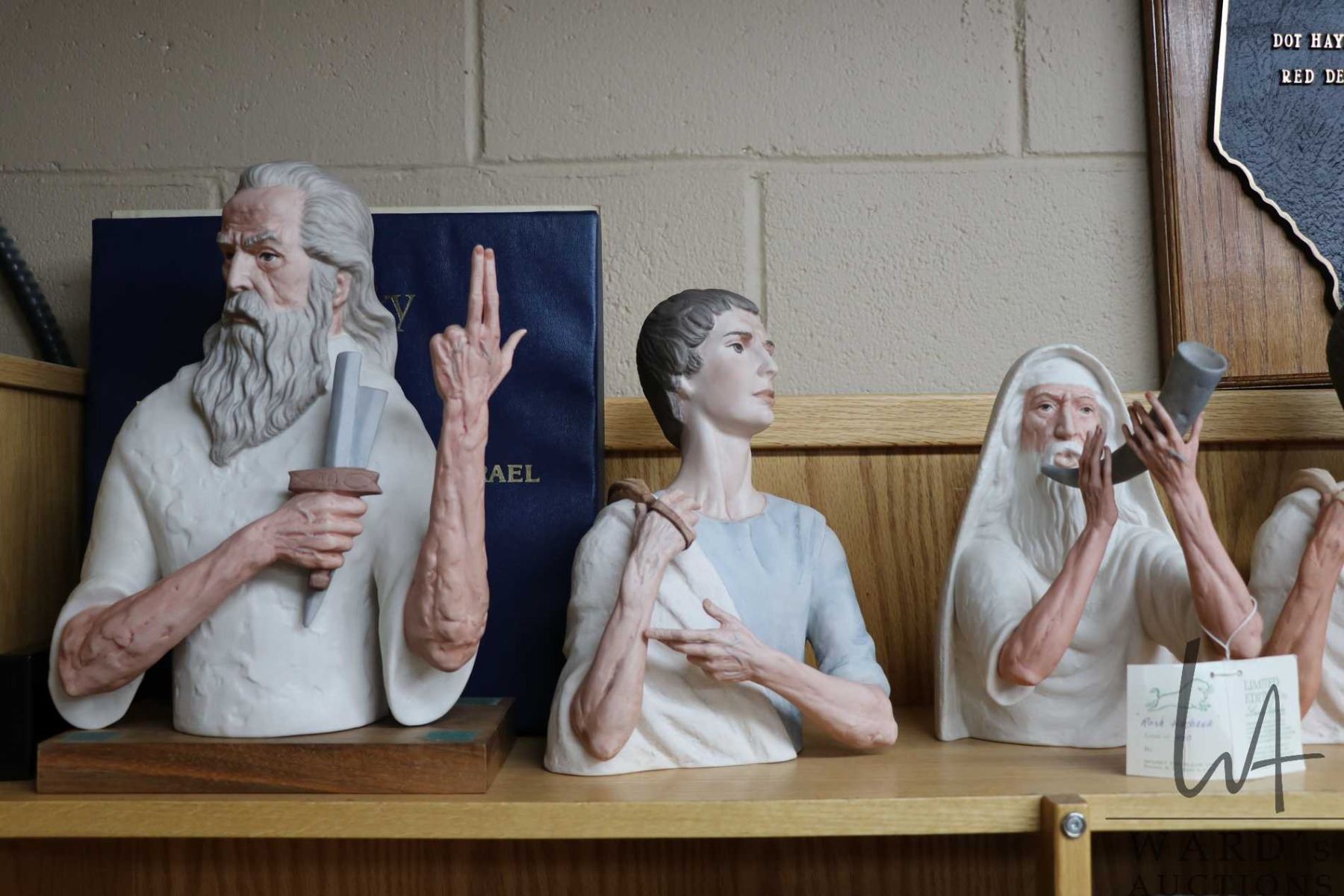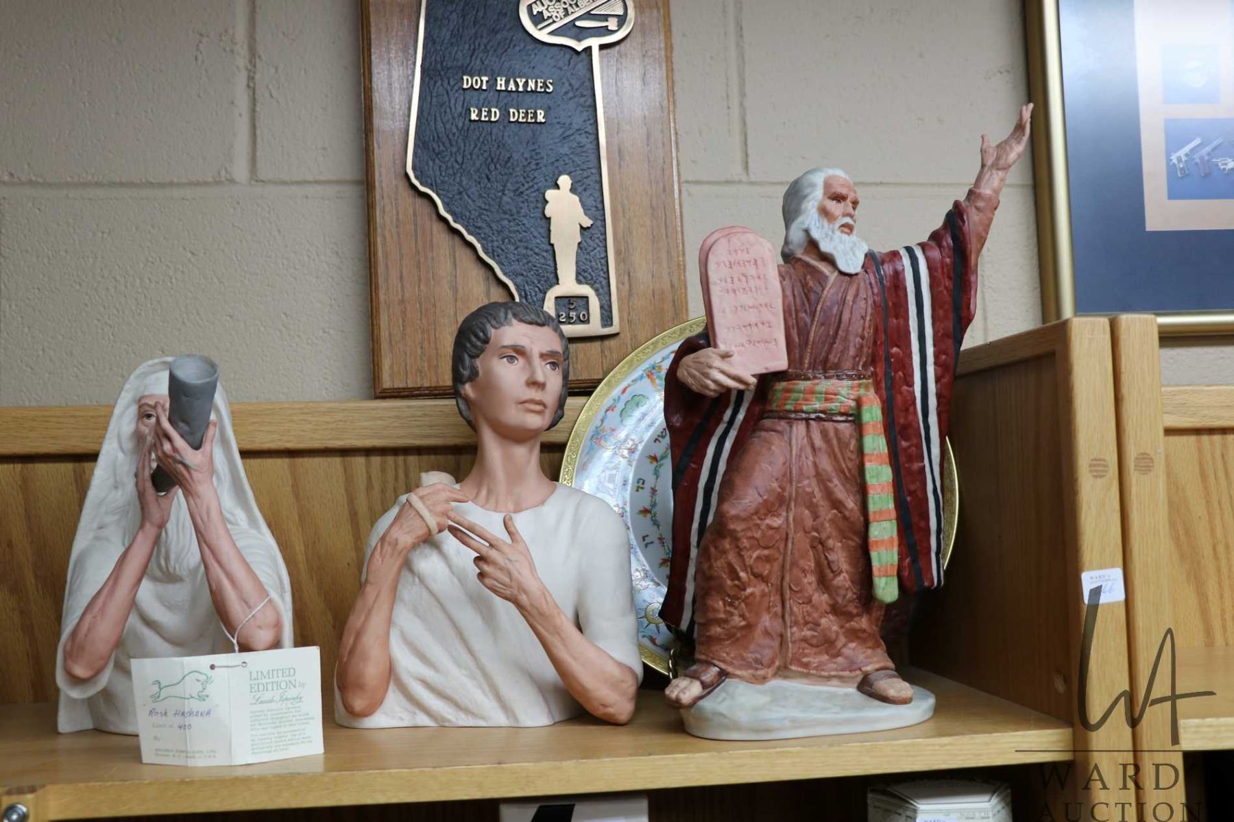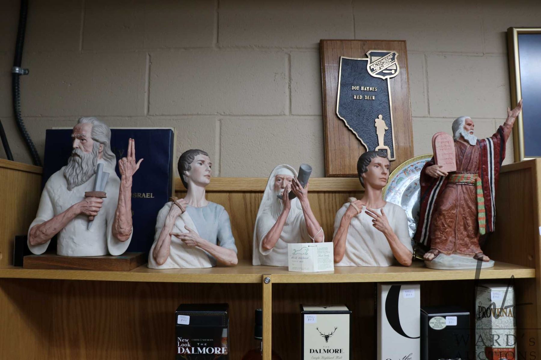 Selection of limited edition Cybis porcelain collectibles including 16" Moses, Isaiah, 2X David and Rosh Hashana plus two limited edition Ispanky "Tribes of Israel" collectible chargers NOTE: SHIPPING IS NOT AVAILABLE, LOCAL PICK UP ONLY