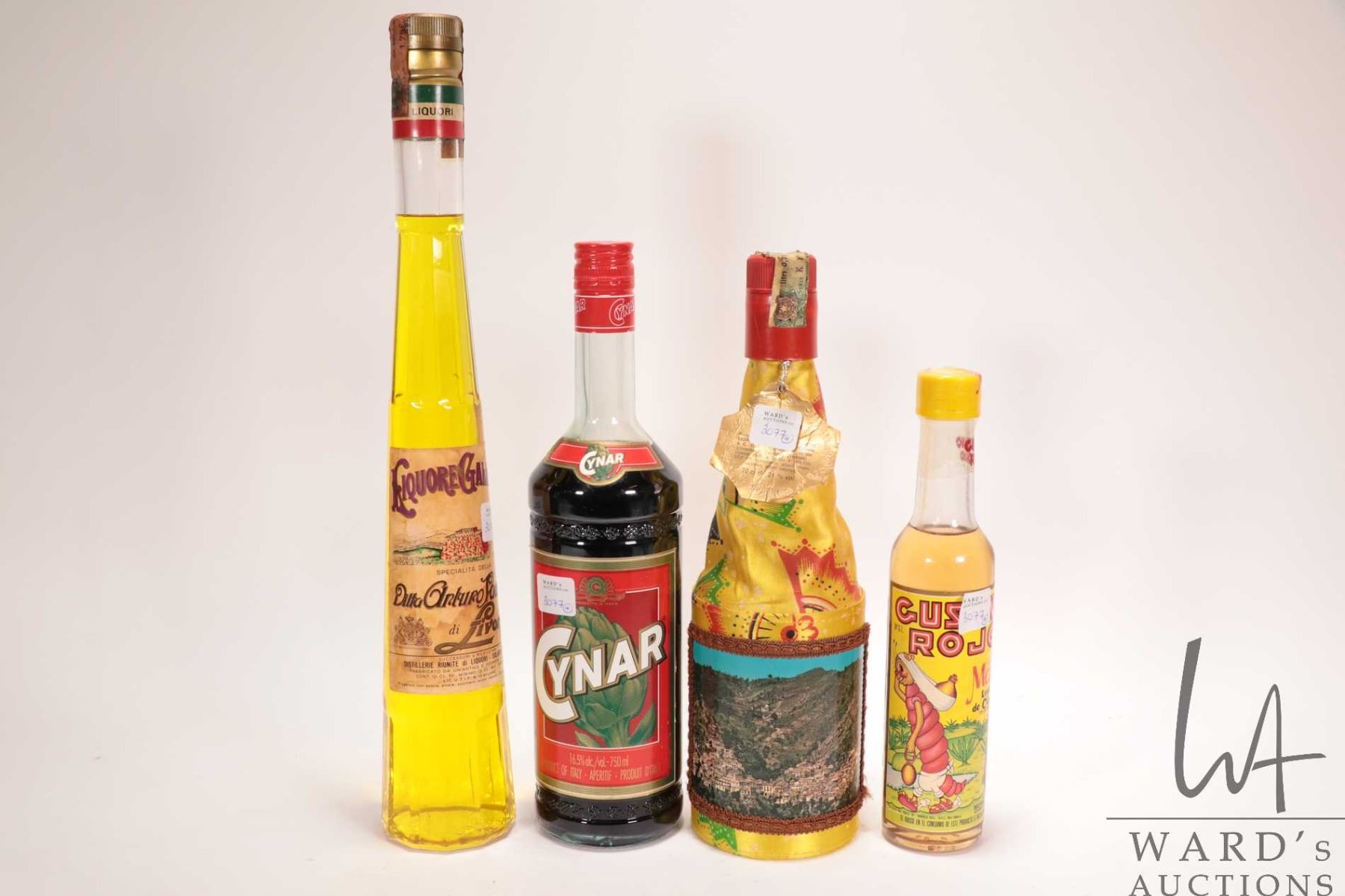 Selection of liqueurs including Liquore Galliano/ 500ml/ 30% ABV, Cynar Italian Apertif/ 750ml/ 16.5% ABV/ Gusano Rojo/ Mexcal. 250ml/ 38% ABV and Maraschino Liquore/ 700ml/ 21% ABV Note: Alcohol cannot be insured by any courier in Canada. Local pick up is recommended. Canadian bidders only
