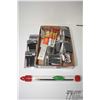 Selection of muzzleloader accessories including muzzleloading loading tool, cleaning jags, duel side