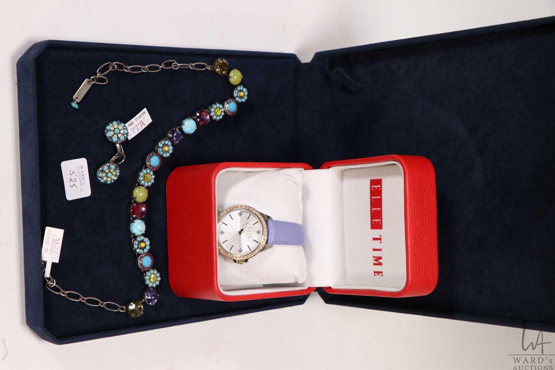 Selection of new jewellery including Elle "Time" wrist watch retail $169.00 and Mariana charm style necklace retail $225.00 and matching earrings retail $72.00
