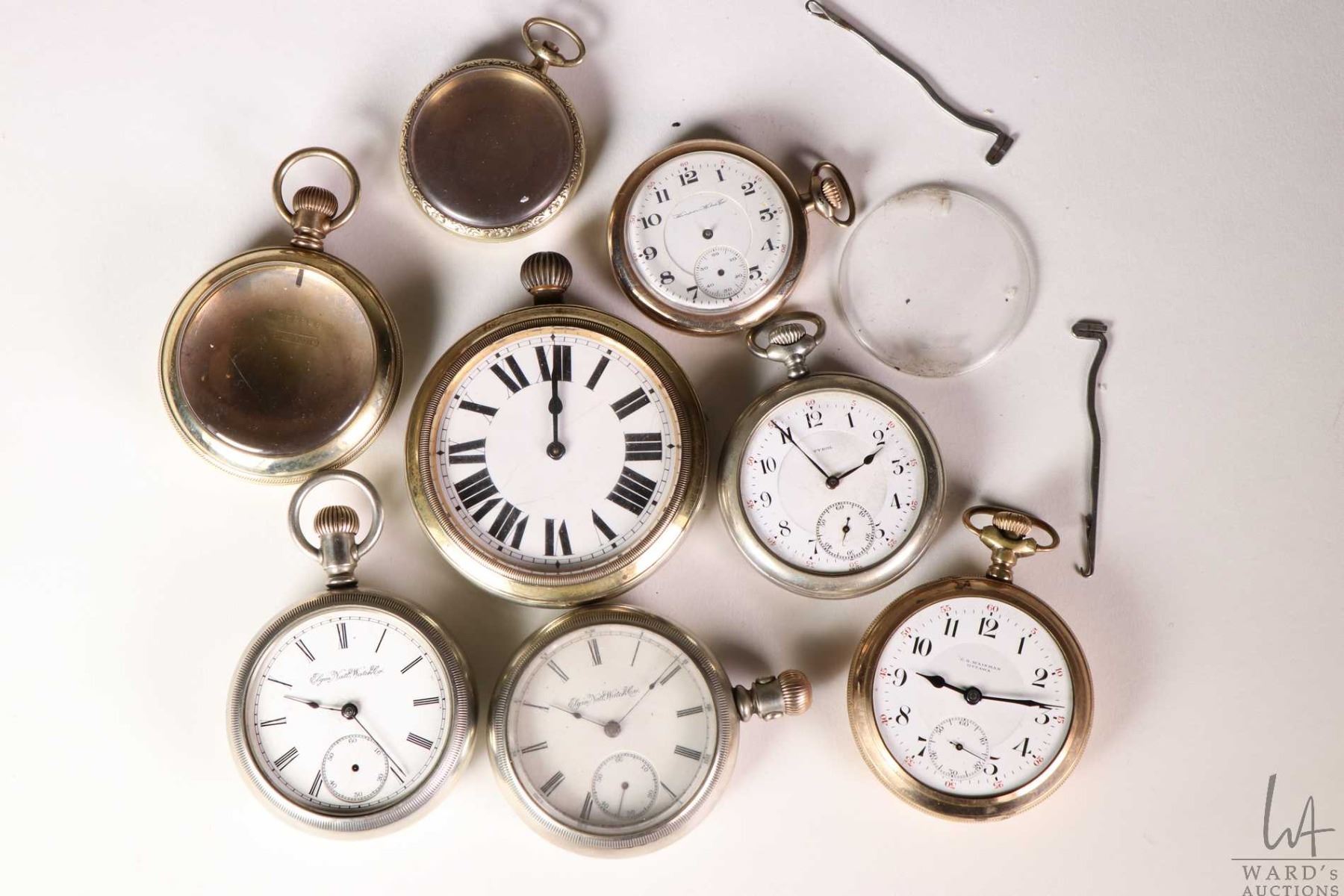 Selection of non working pocket watches including Elgin Tyrol, Elgin, Hamilton Watch Co., C.G. Wainman Ottowa etc. some in gold filled cases, some in silveroid plus two empty cases, eight pieces in total