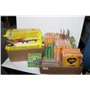 Selection of outdoor items including five duraflame logs, mosquito coils and holders, table clothes,