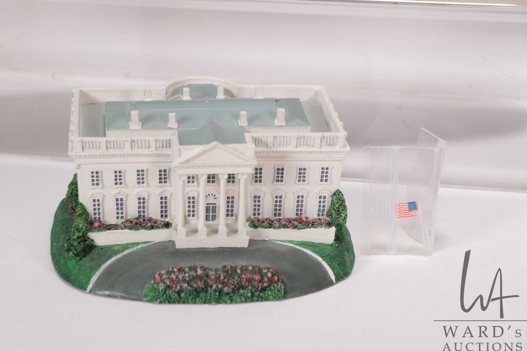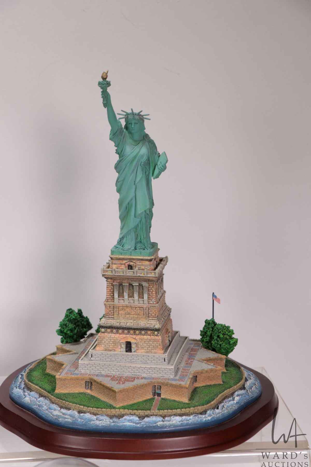 Selection of resin United States themed statues including White House, Statue of Liberty and a Titan