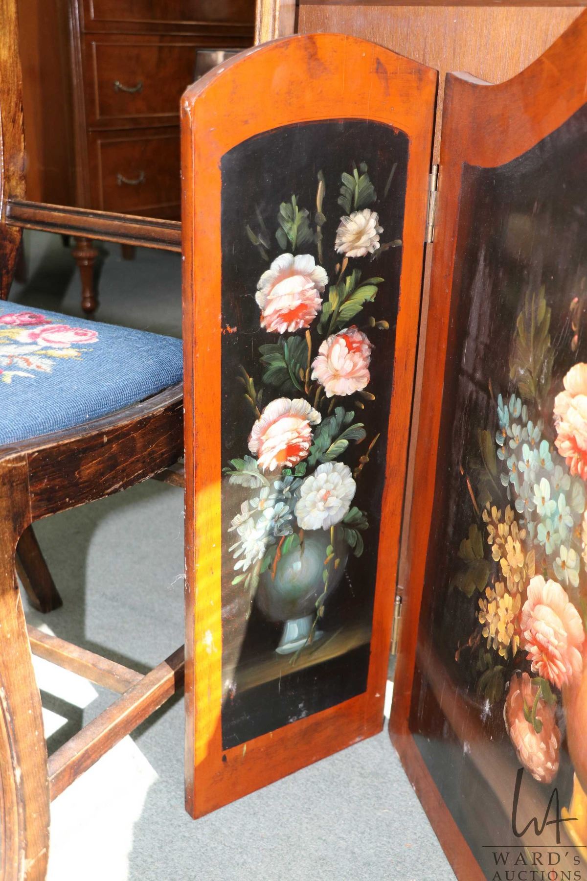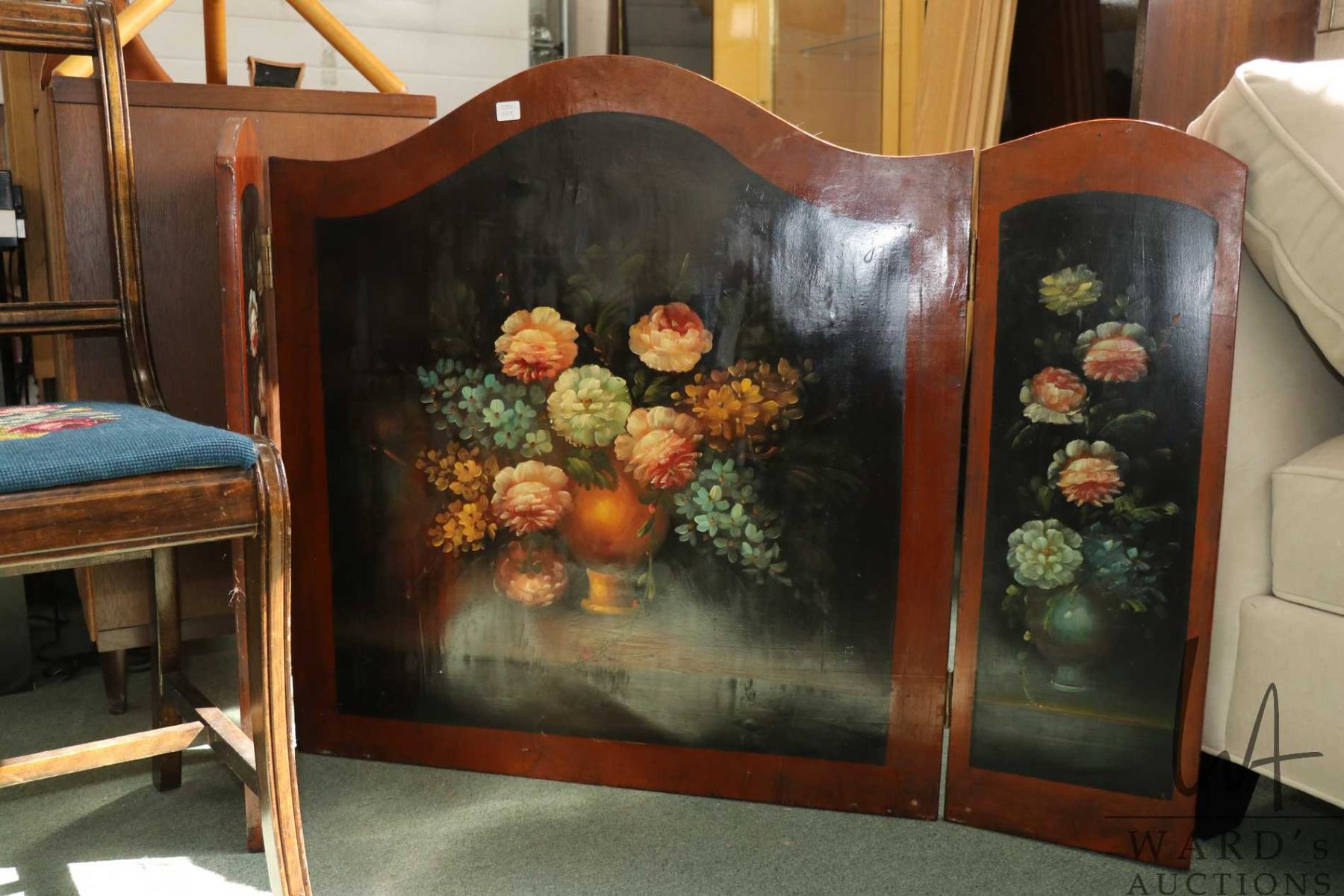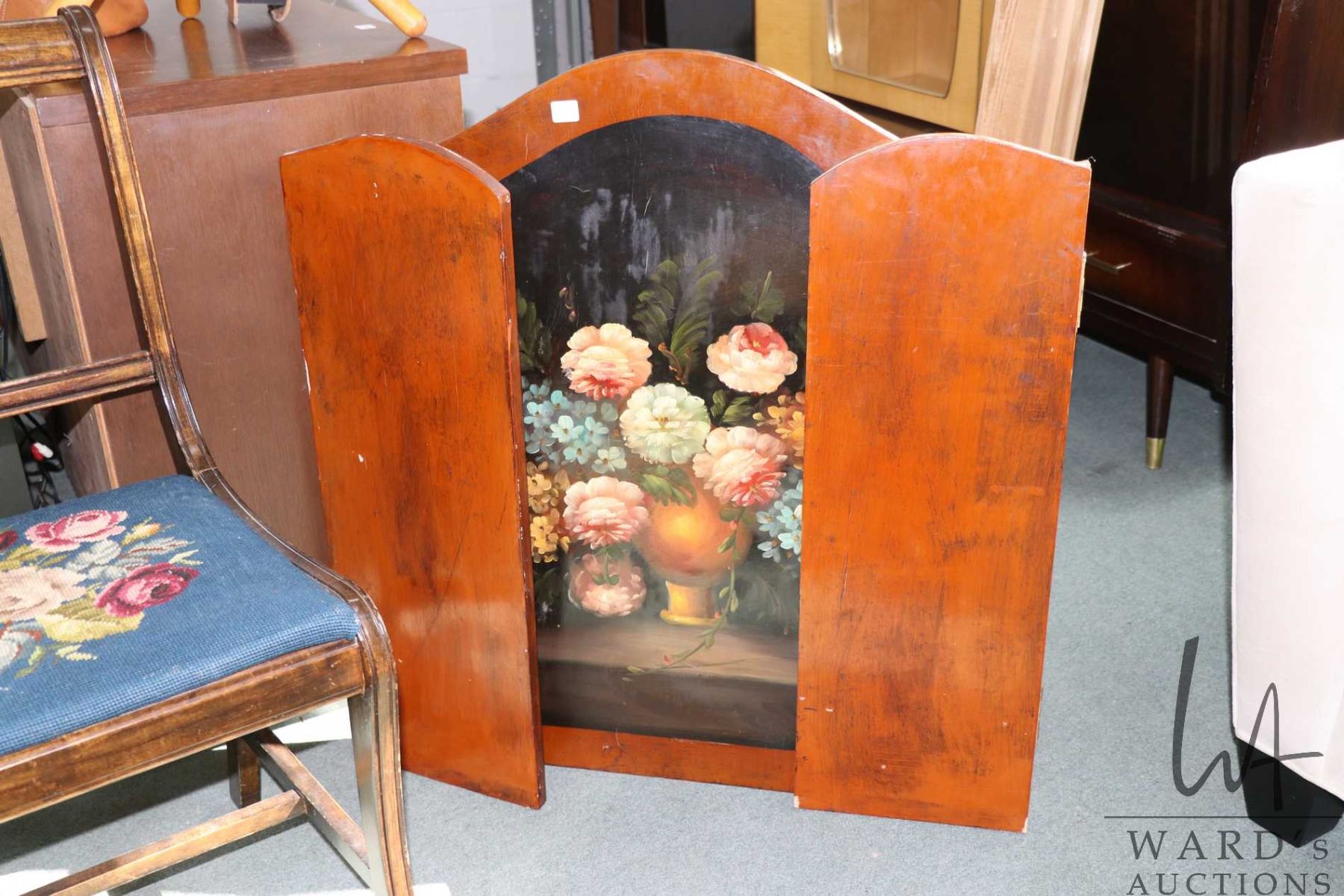Selection of small furnishing including Gibbard mahogany 22" X 14" D wine table, Duncan Fyfe dining chair with needle point upholstered seat and a floral motif fireplace screen