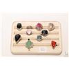 Selection of sterling silver and gemstone rings including Iolite, agate, red jasper, cherry ruby etc