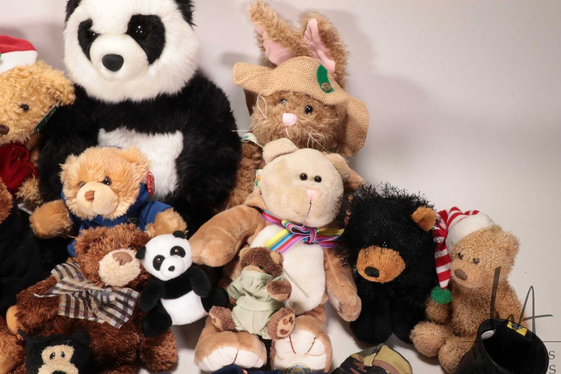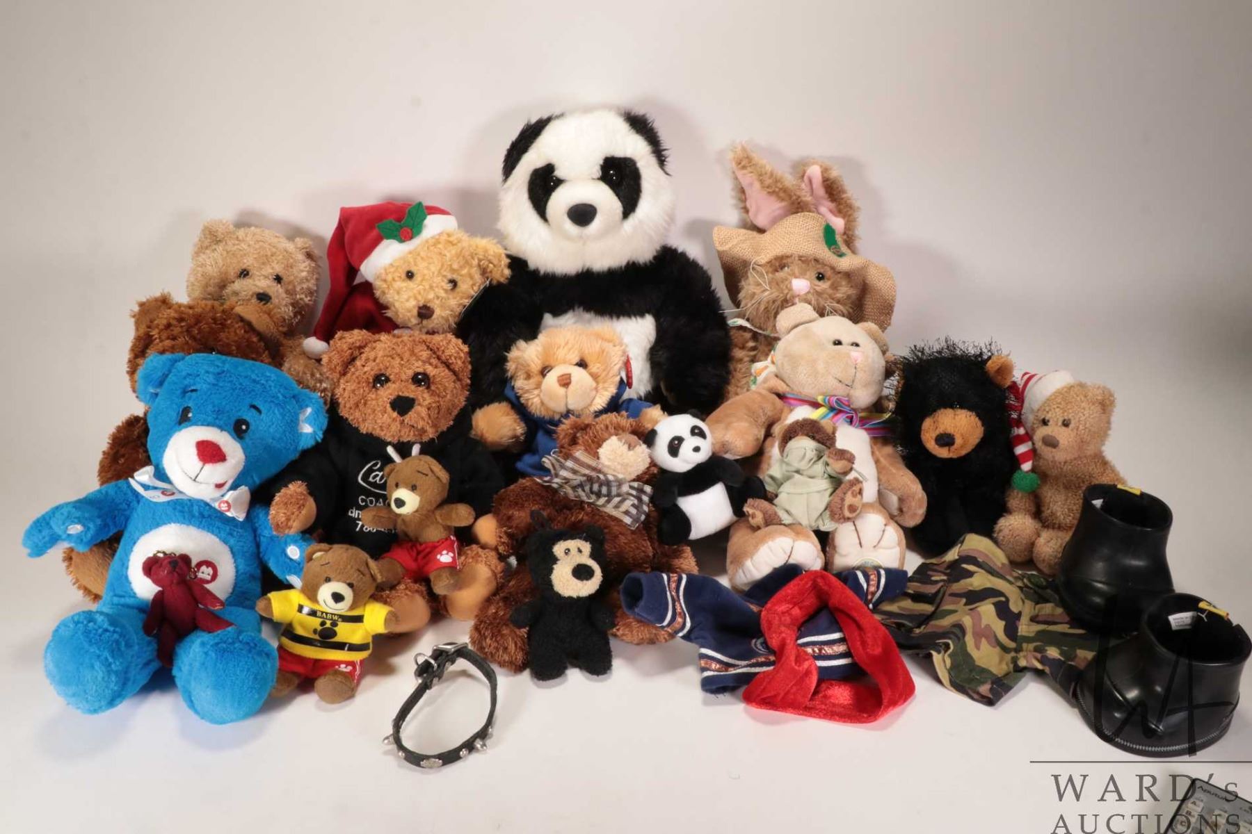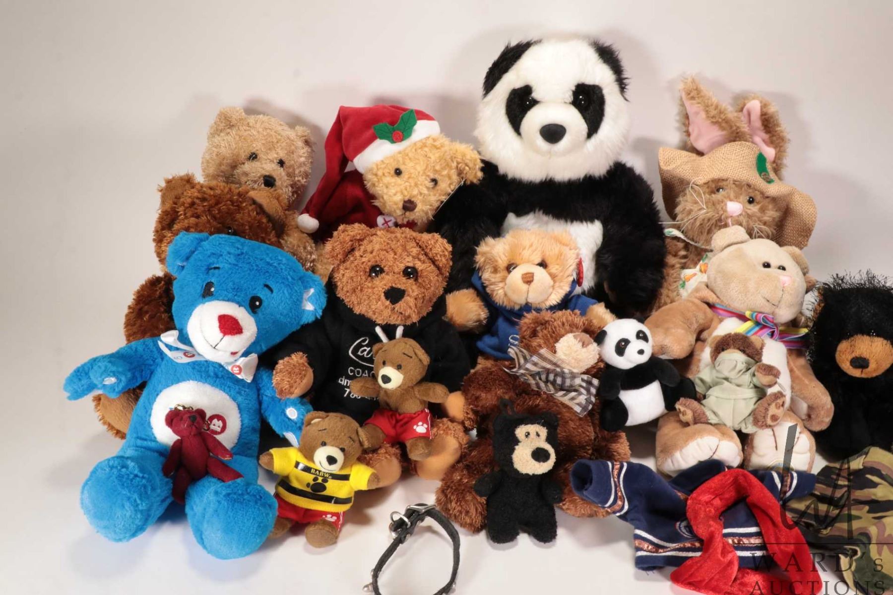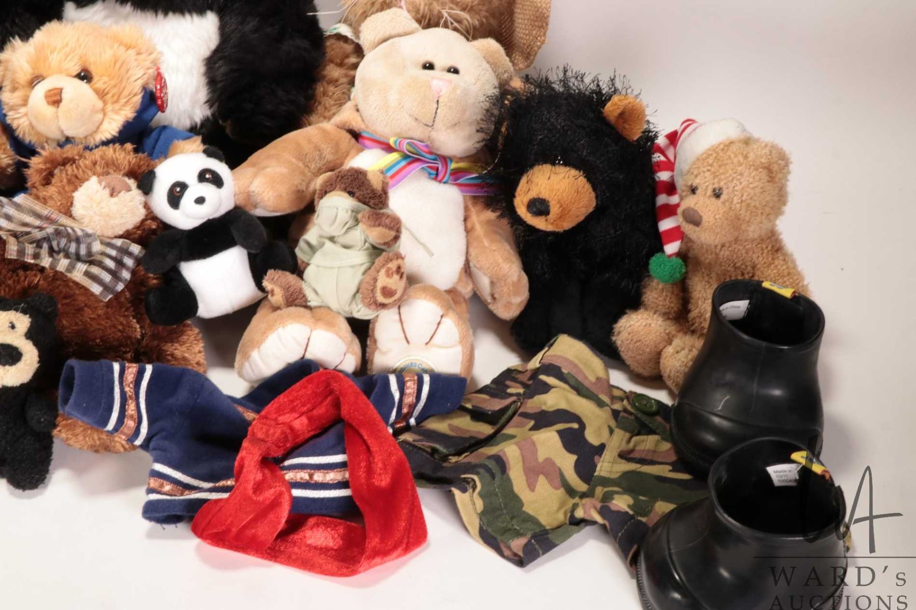 Selection of teddy bear stuffies including Curly Critters, Build-A-Bear, Russ, Keel Toys,Starbucks Coffee Co. etc.