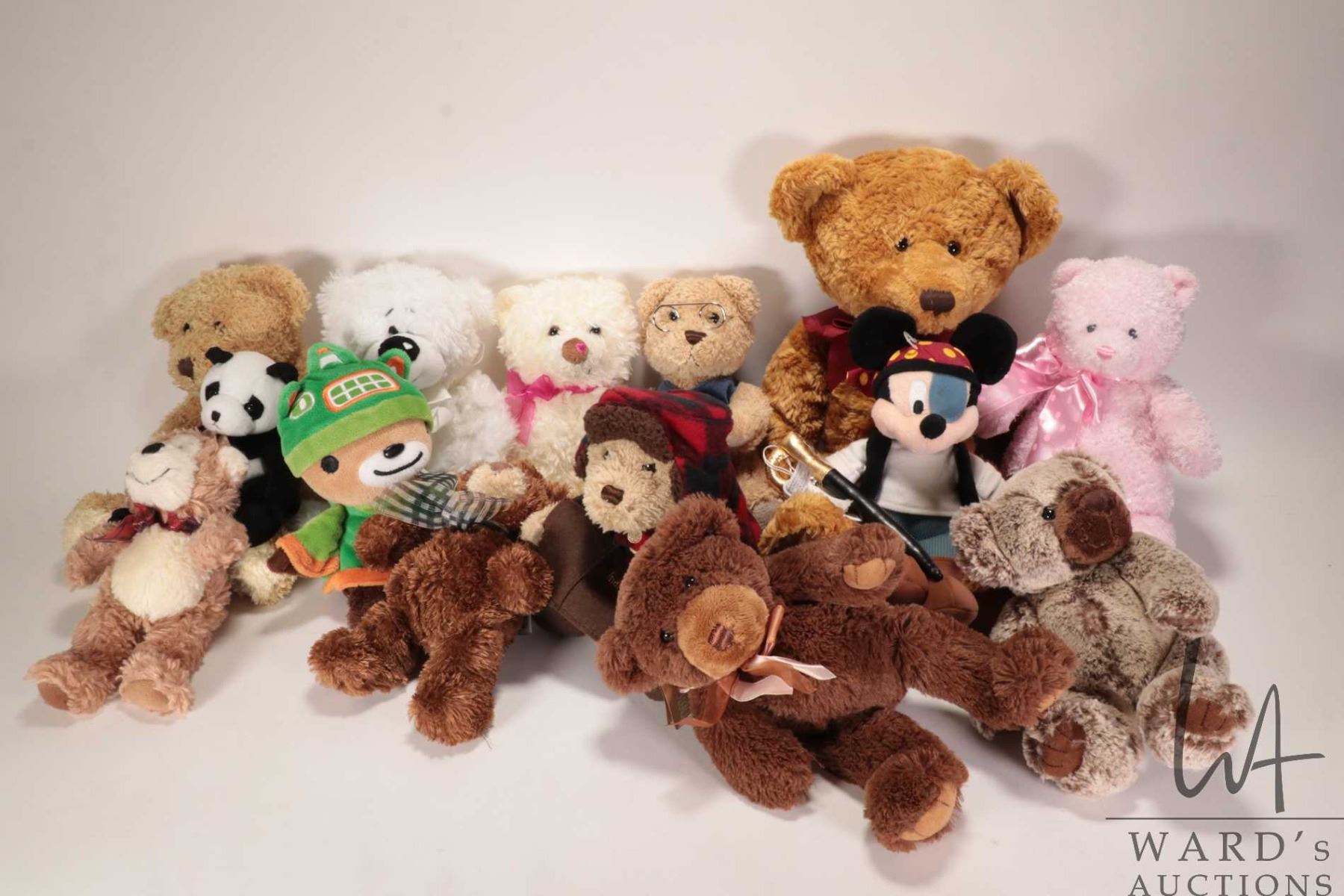 Selection of teddy bears and stuffies including Wilford by Russ, Stollery Bear, Disney, Creature Comforts, Gund etc.