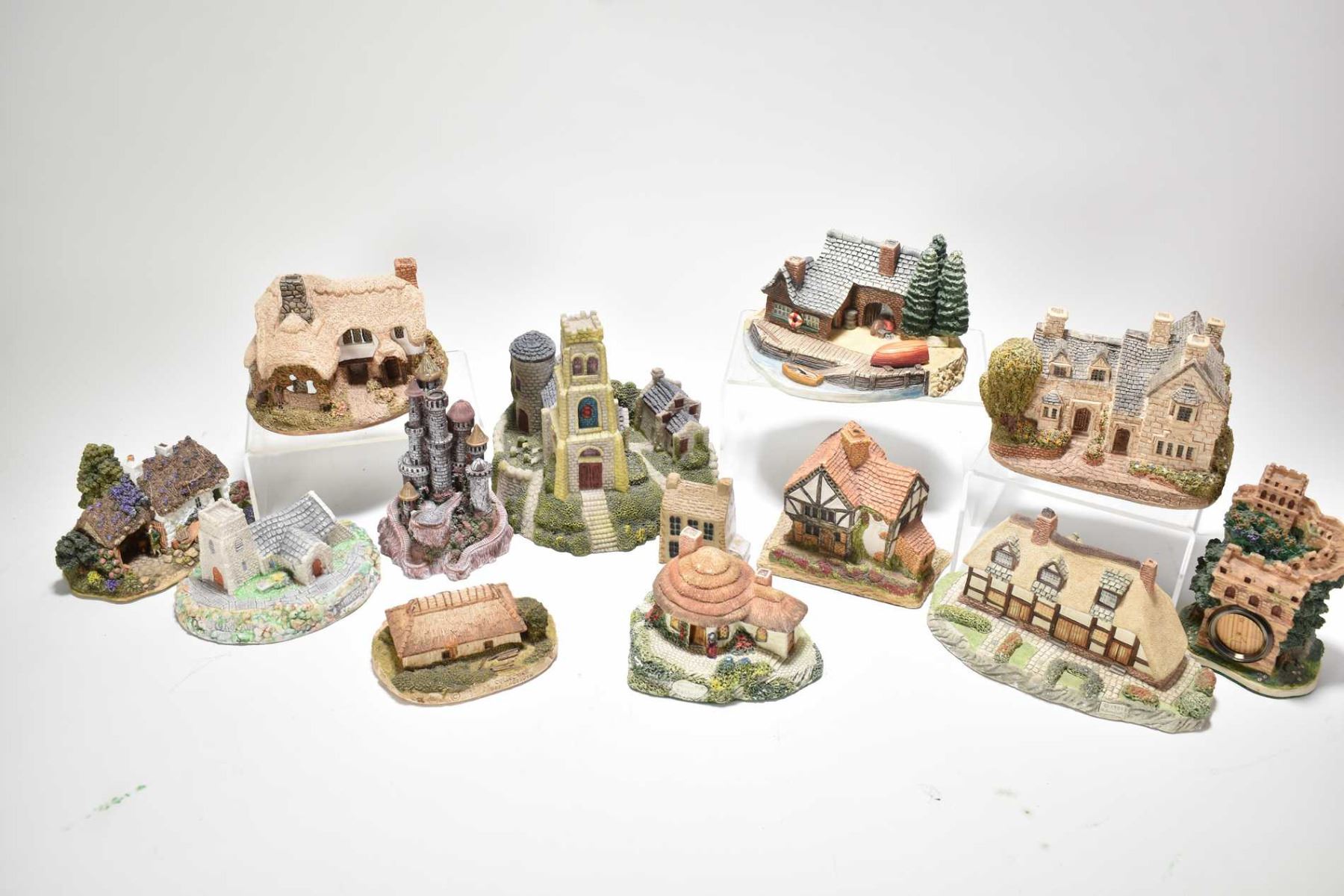 Selection of thirteen collectible cottage style cabinet pieces including Lilliput Lane, Museum Collections Inc, Memory Lane etc.