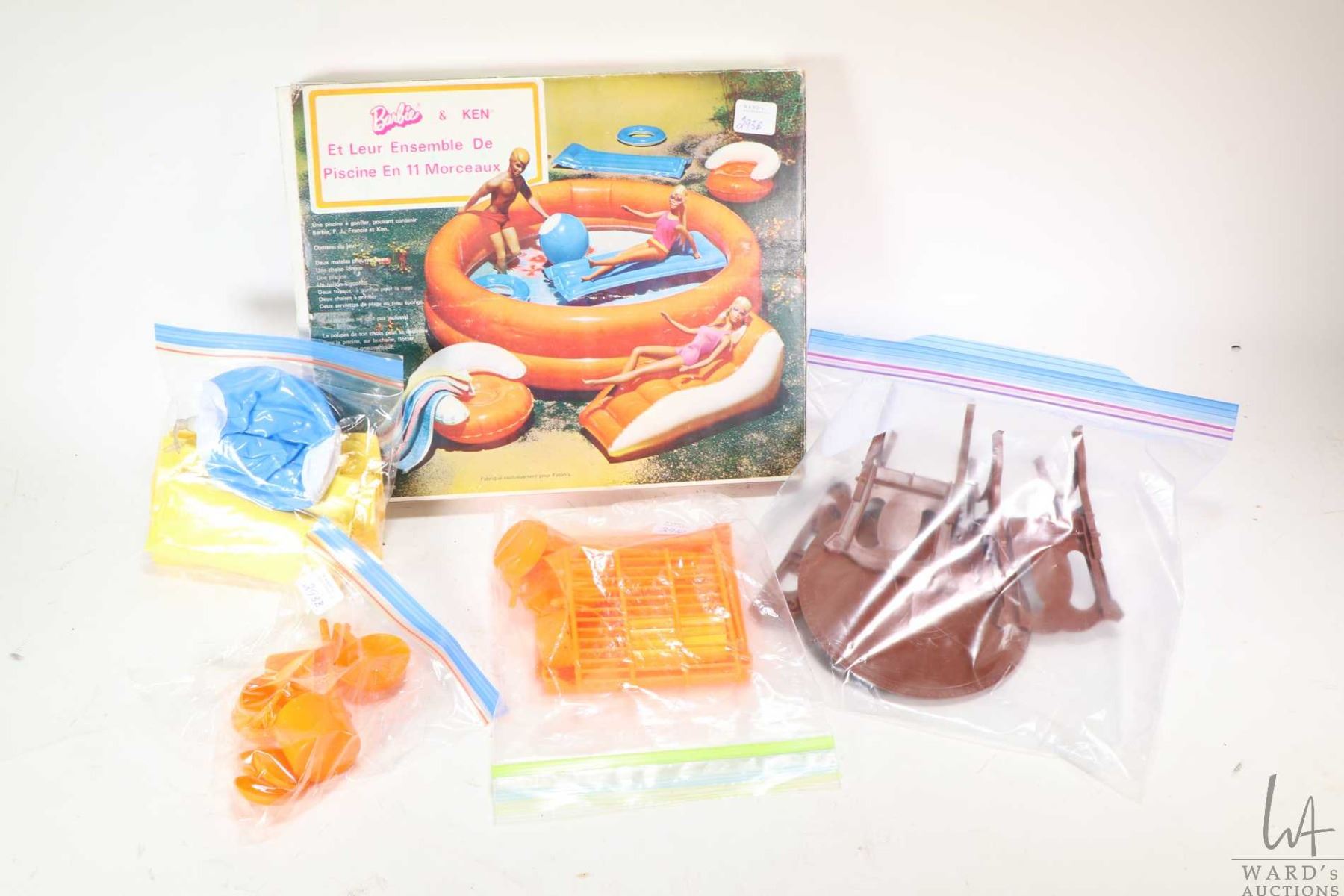 Selection of vintage 1970's era Barbie doll accessories including Barbie and Ken pool set, not check