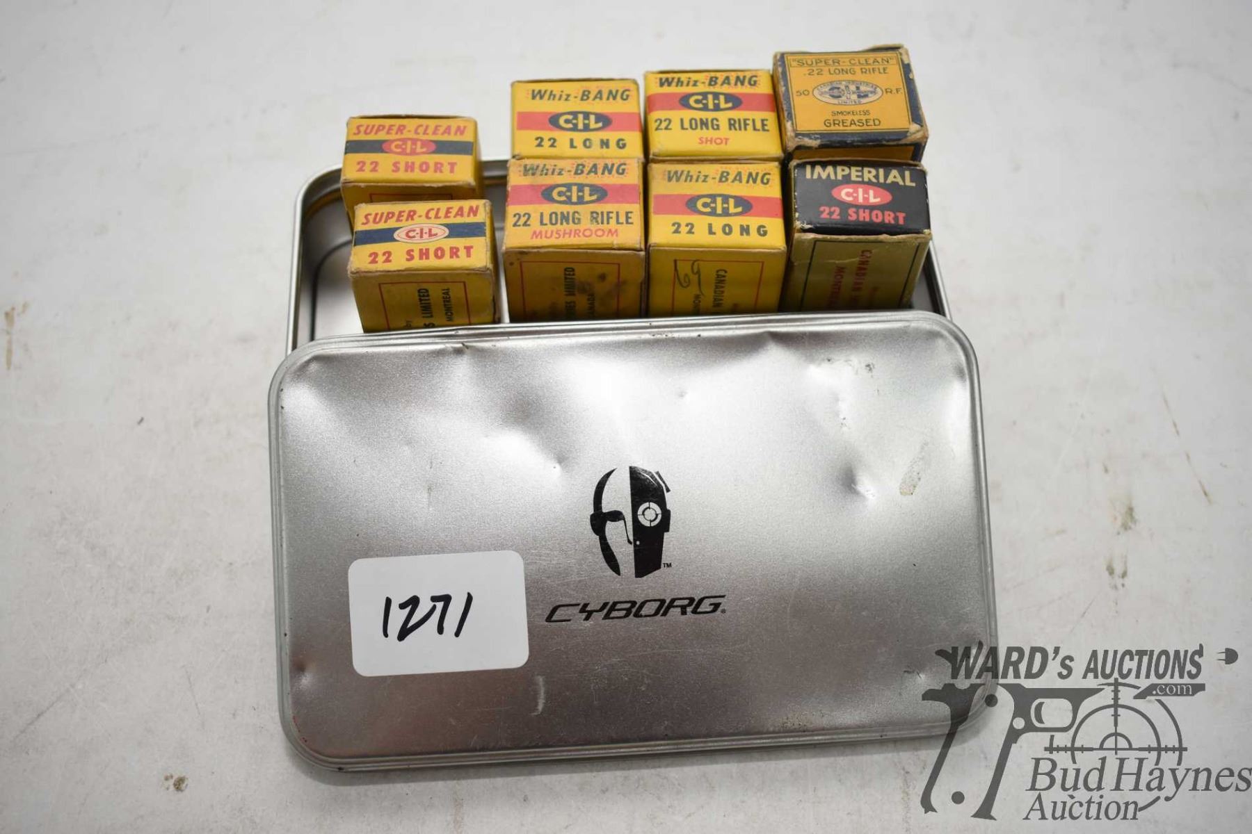 Selection of vintage .22 amo including two full 50 count boxes CIL .22 short, one full 50 count box Imperial .22 short, three full 50 count and one partial 17 count boxes of CIL whiz-bang .22 long and one full 50 count box CIL .22 LR