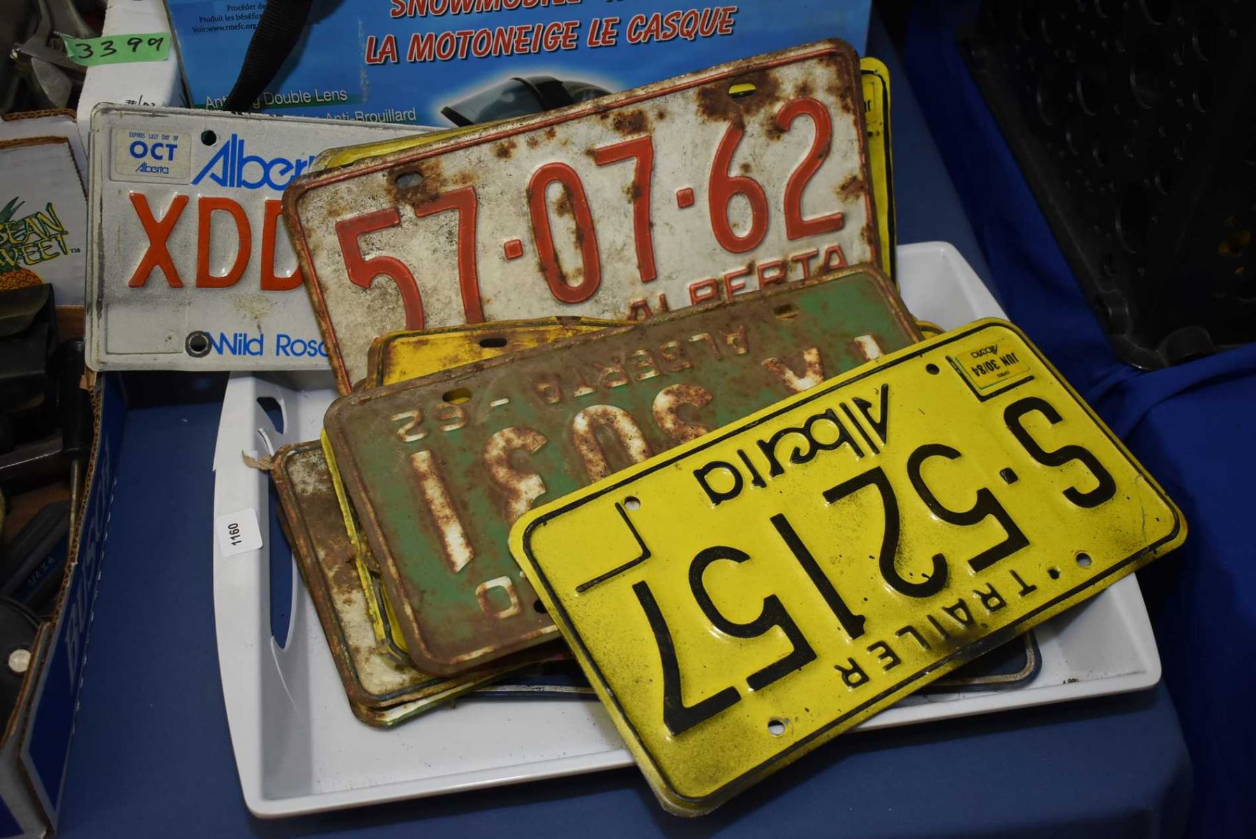 Selection of vintage Alberta licence plates including 1958, 1960, 1962, etc.