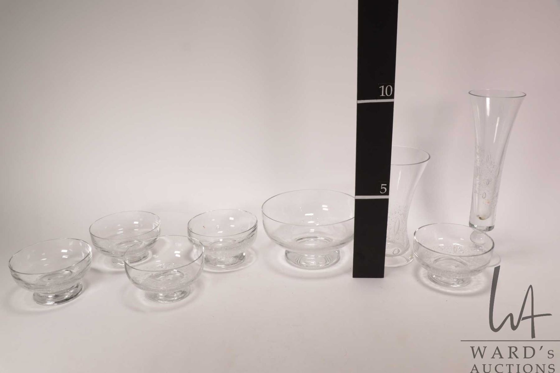 Selection of vintage German Eisch Silberperle glass ware including six piece dessert, 10" trumpet vase and a smaller vase