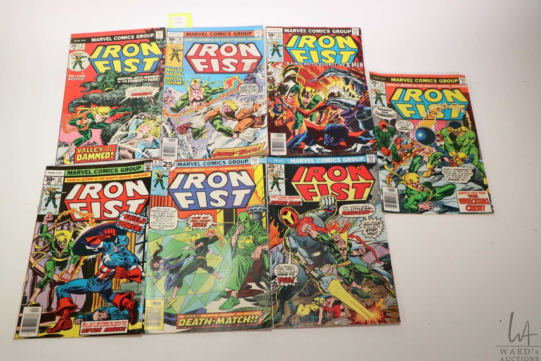 Selection of vintage Marvel comic books all "Iron Fist", all either 25 cents or 30 cent, seven in total