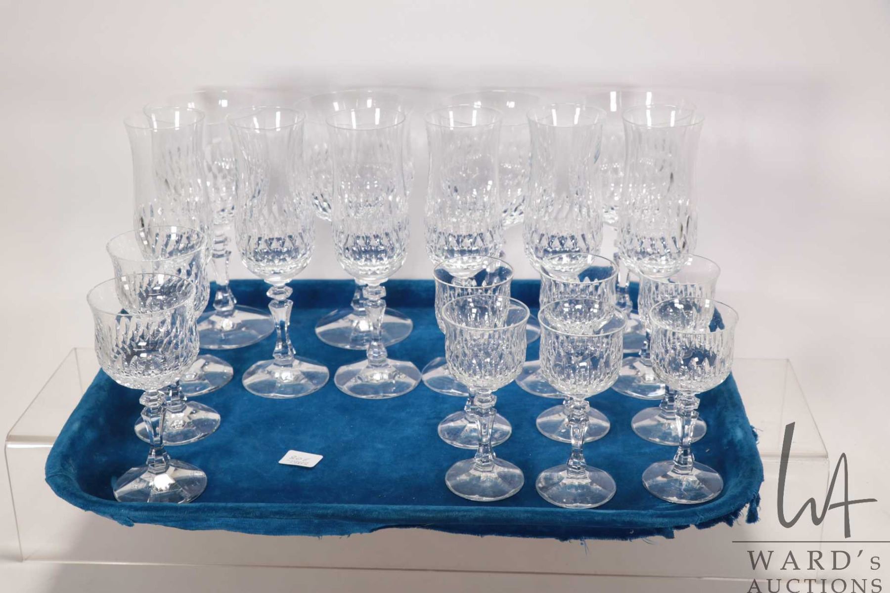 Selection of vintage Zweisel German crystal including six champagne flutes, six aperitif and two she