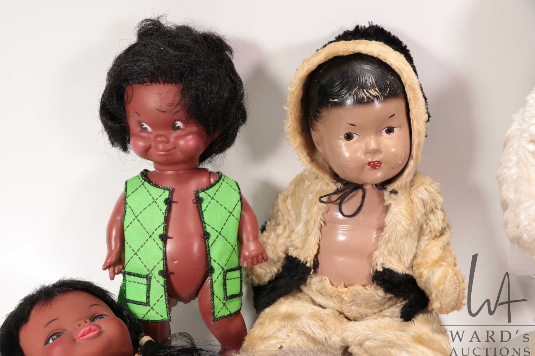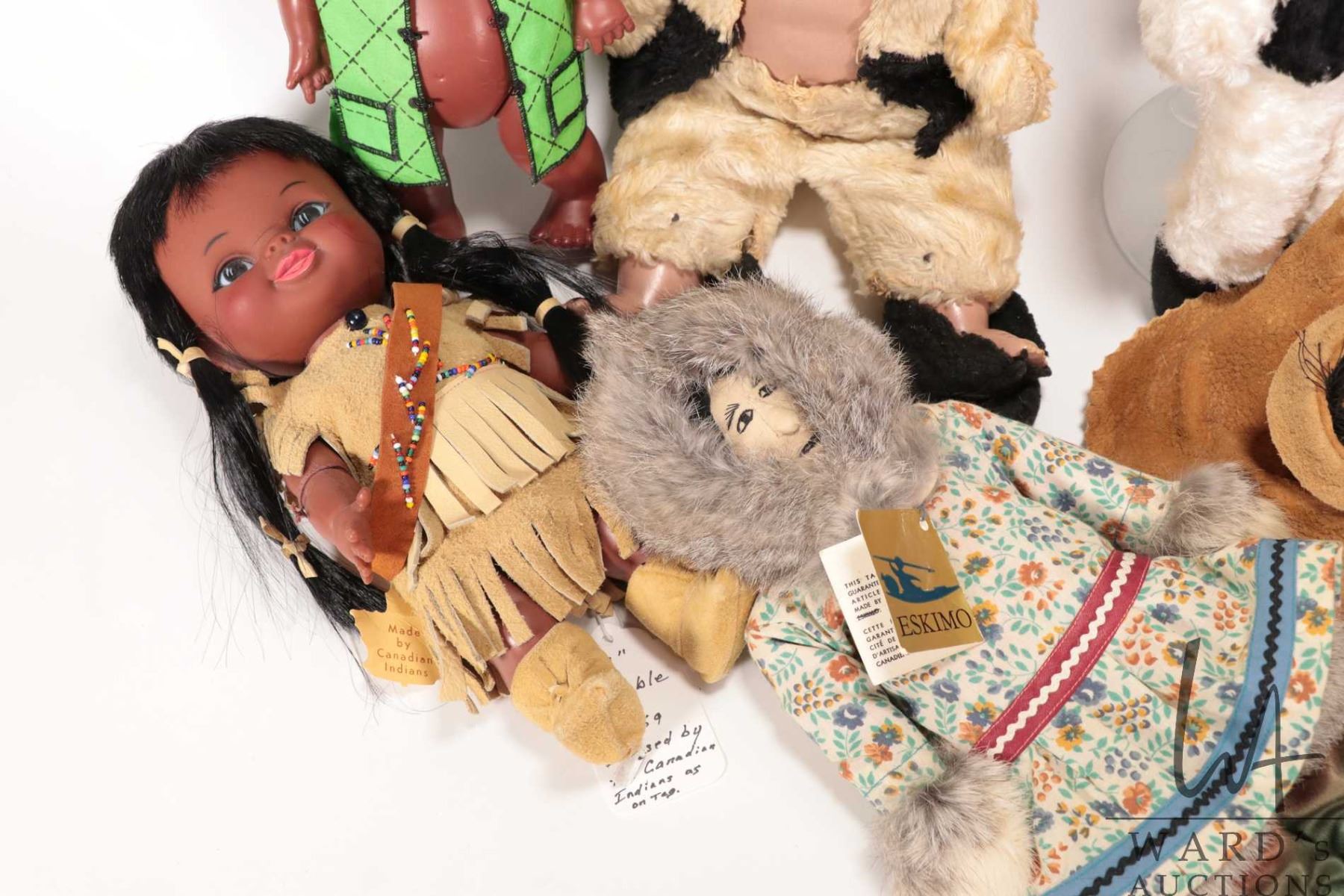 Selection of vintage and collectible Inuit dolls including Reliable Kimmie doll, Dee & Cee doll, Rel
