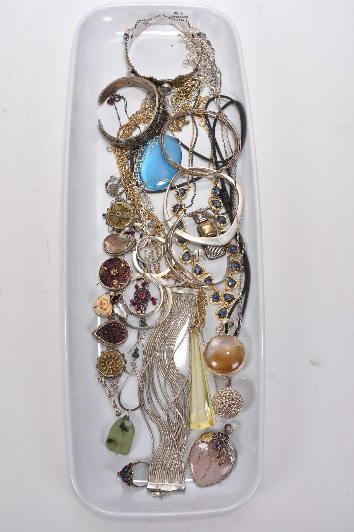 Selection of vintage and collectible jewellery including sterling silver, bangles, bracelet, gemstone and sterling pendant, designer pieces, etc.